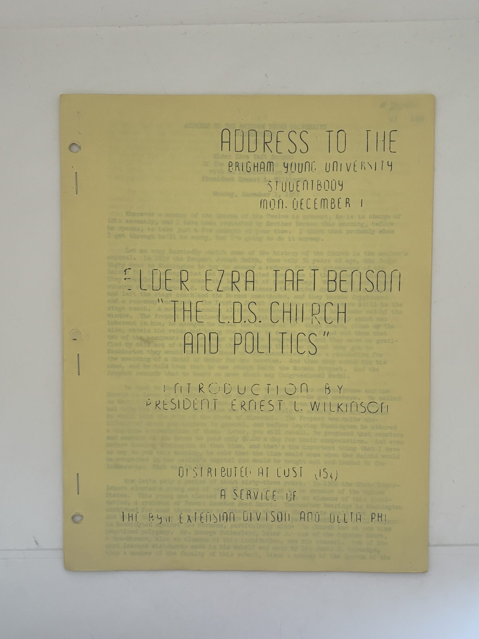 Address to BYU: The LDS Church and Politics – December 1, 1962 by Elder Ezra Taft Benson
