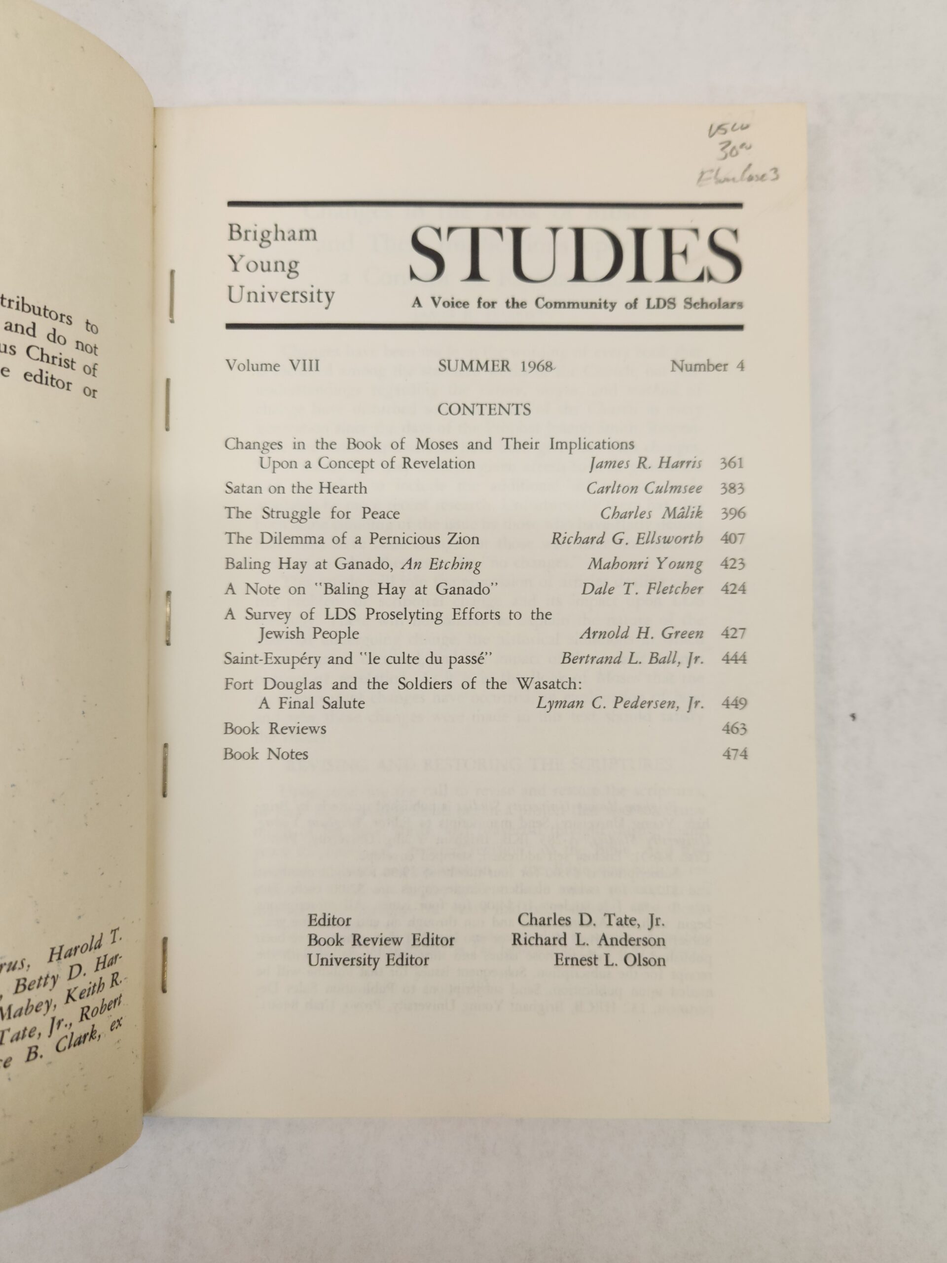 Brigham Young University Studies:: A Voice for the Community of LDS Scholars, Volume VIII Summer 1968 Number 4 (1968, Paperback)
