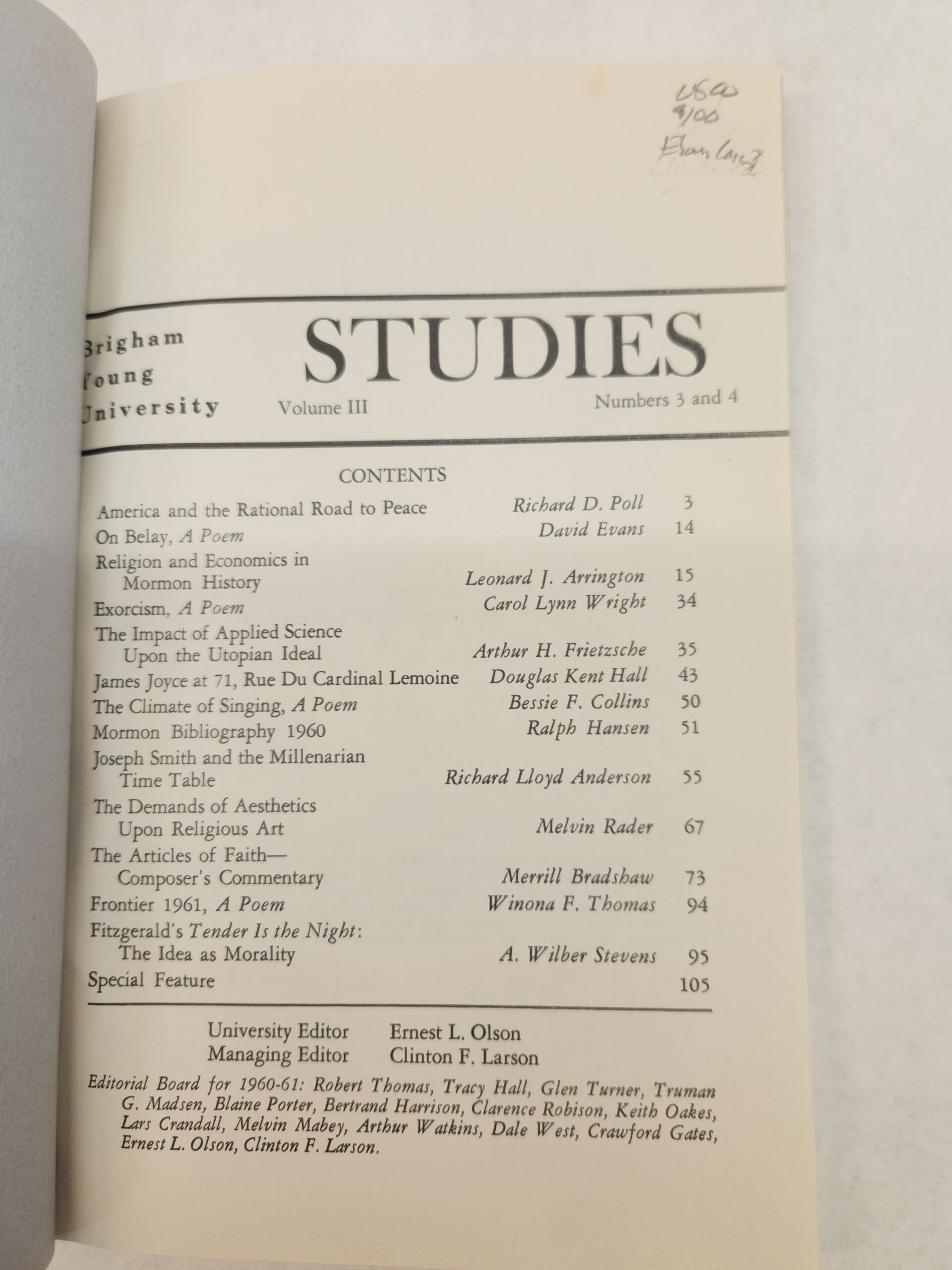Brigham Young University Studies:: Spring and Summer 1961, Volume III, Numbers 3 and 4 (1961, Paperback)