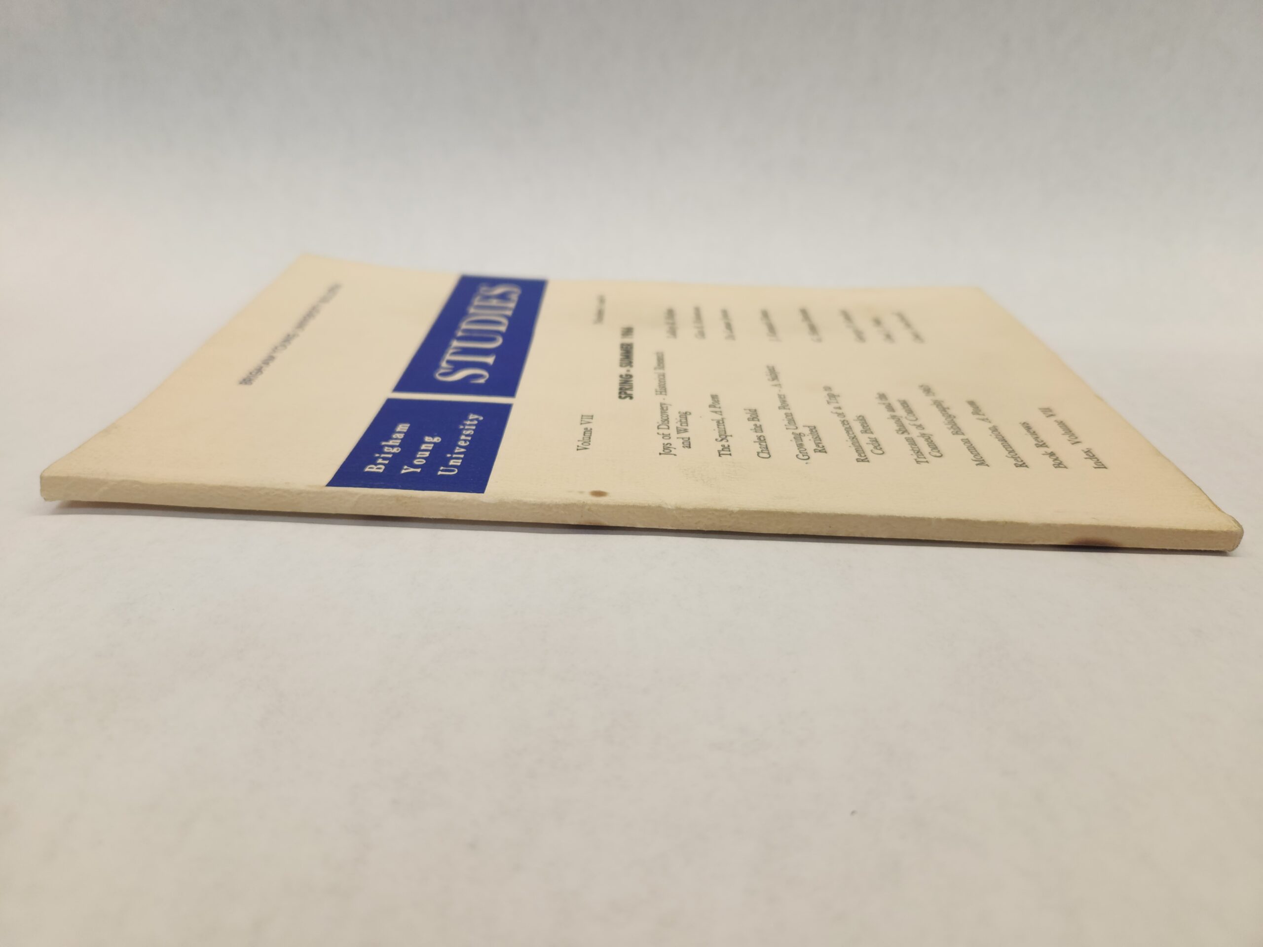 Brigham Young University Studies:: Spring – Summer 1966, Volume VII, Numbers 3 and 4 (1966, Paperback) No writings/marks on pages. Corners and edges show show some shelf wear. Back cover has a three circle stains (see pic in gallery). Front cover has a couple stain/smudge marks. Binding is good.