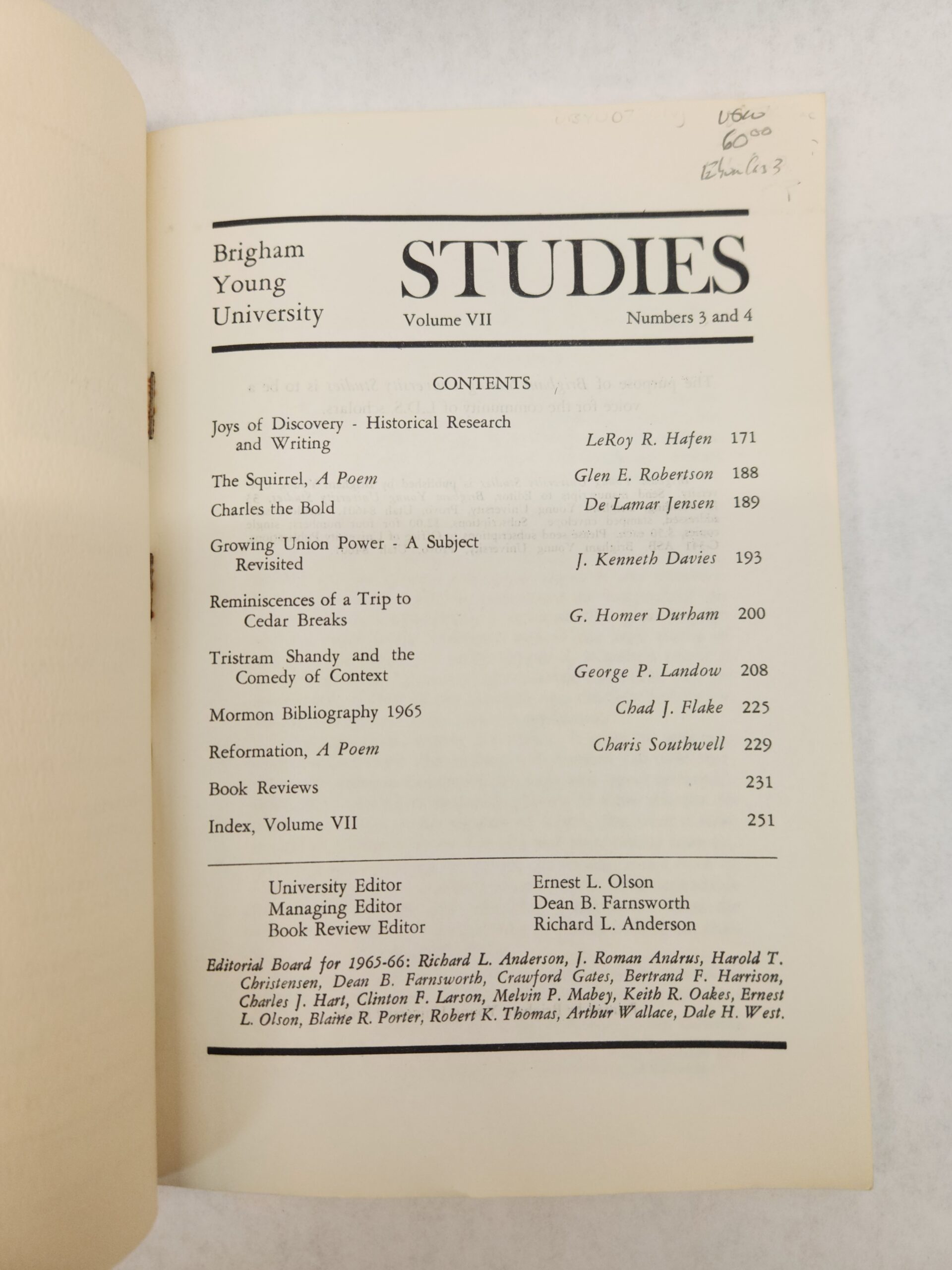 Brigham Young University Studies:: Spring – Summer 1966, Volume VII, Numbers 3 and 4 (1966, Paperback)