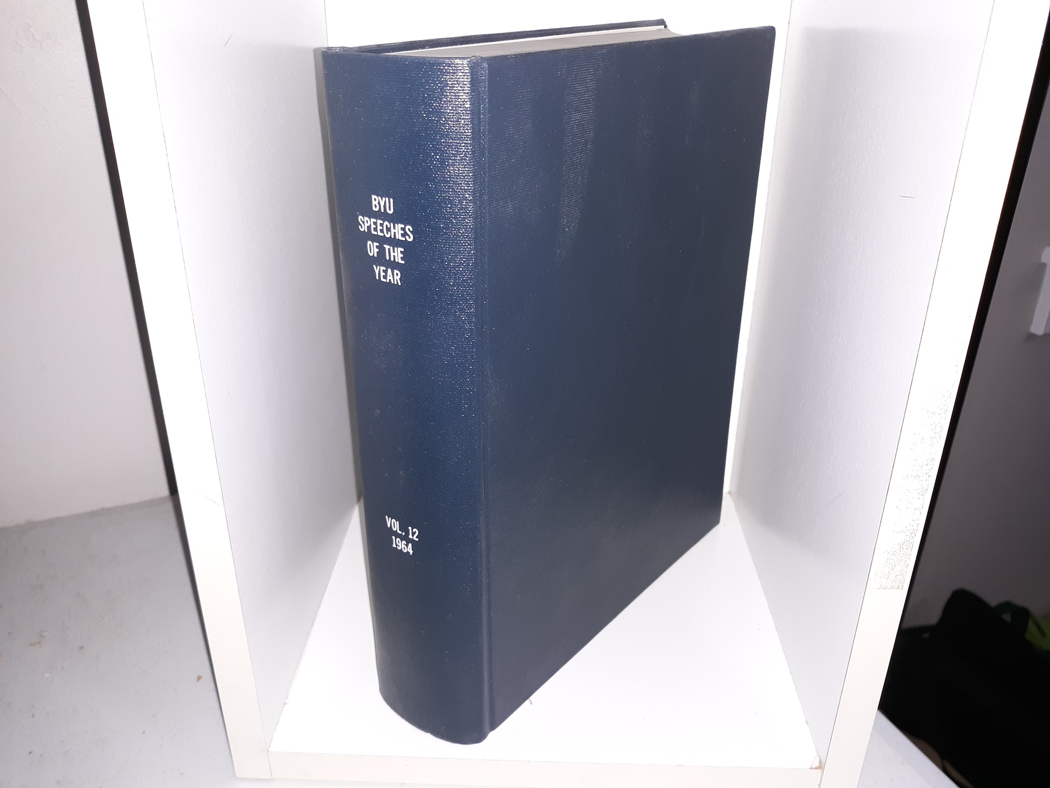 Good condition, large, thick, dark blue hardcover with no dust jacket. The cover has some scuff marks. The front flyleaf has writing in pencil and eraser marks. Text throughout is clean, clear, and legible.