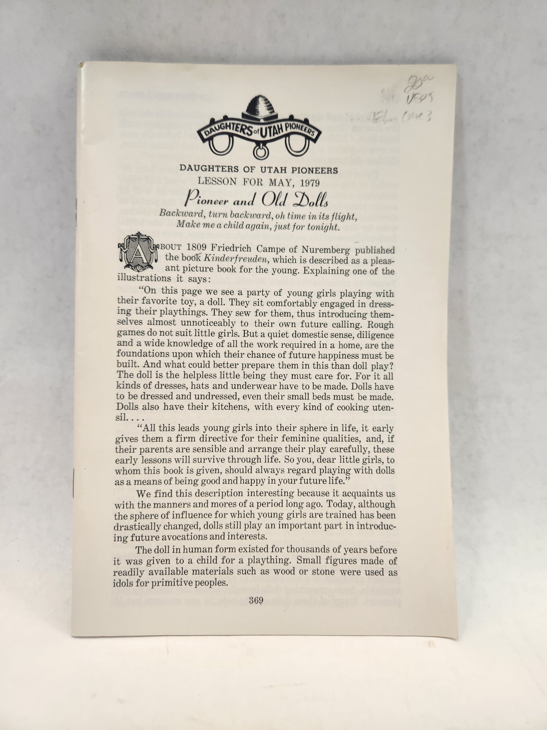 Daughters of Utah Pioneers:: Lessons for May, 1979, Pioneer and Old Dolls (1979, Paperback – Bound by Two Staples)