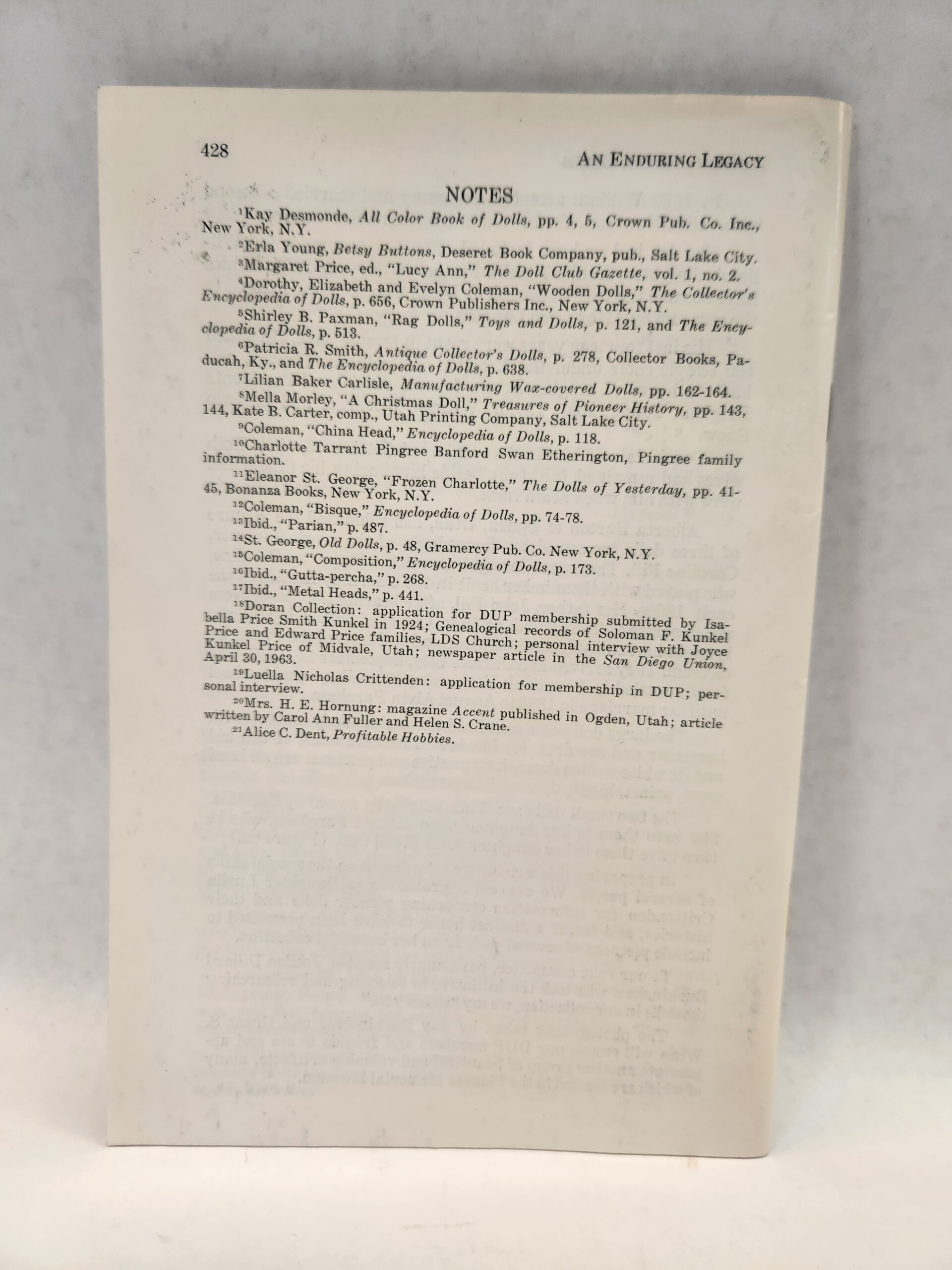 Daughters of Utah Pioneers:: Lessons for May, 1979, Pioneer and Old Dolls (1979, Paperback – Bound by Two Staples) No marks pr writing on pages. Binding is good. Corners and edges show some shelf wear with tiny tear and bend marks. Back cover has some smudge marks.