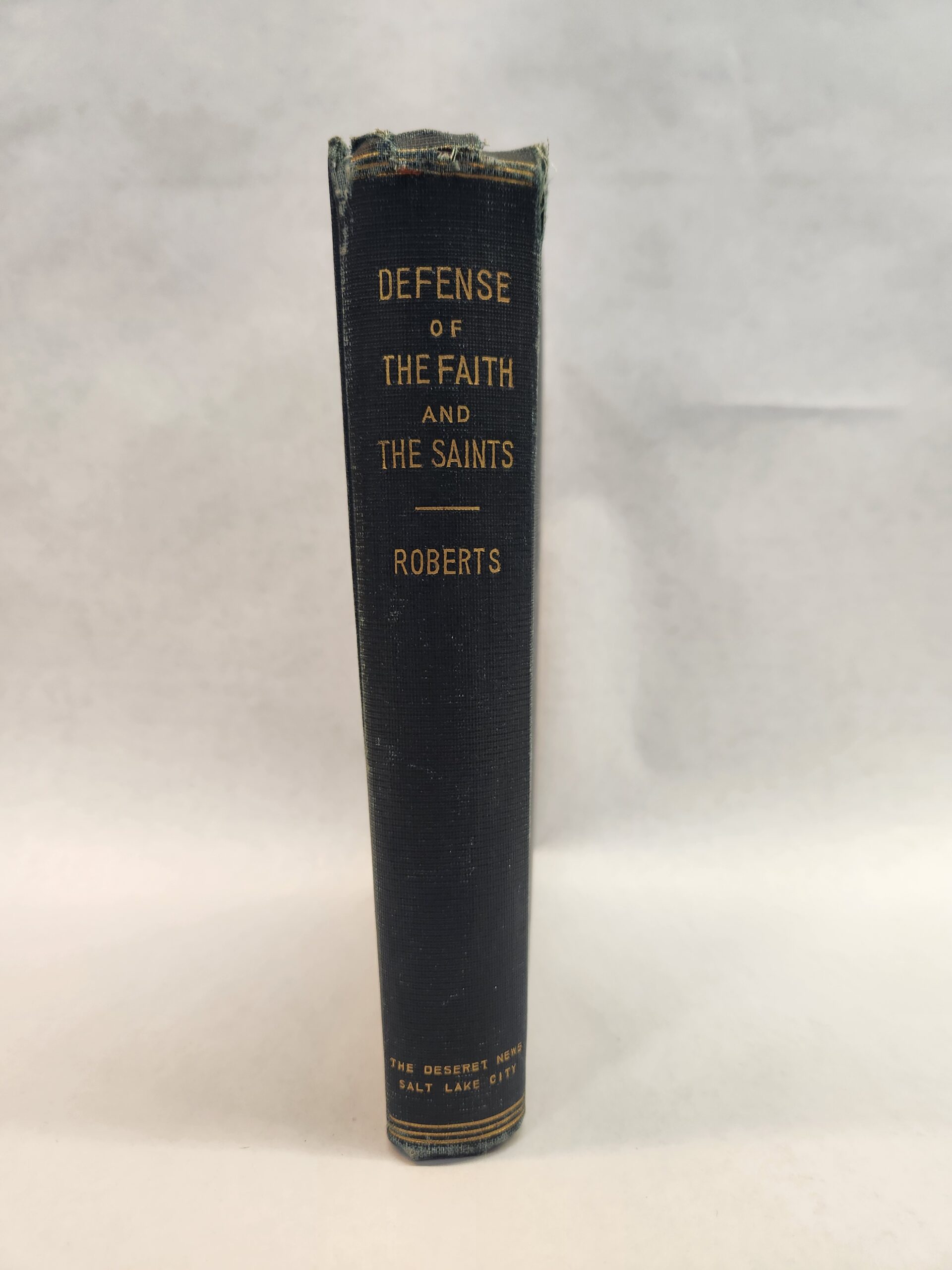 Defense of The Faith And The Saints (1907, Volume 1 Only, Hardcover) No marks or writing on the pages. Binding is good. Corners and edges shows wear with scuffs, scratches, and dents/bend marks. Cover, front and back, has some smudge marks and scuff marks. The spine’s top is torn and worn down.