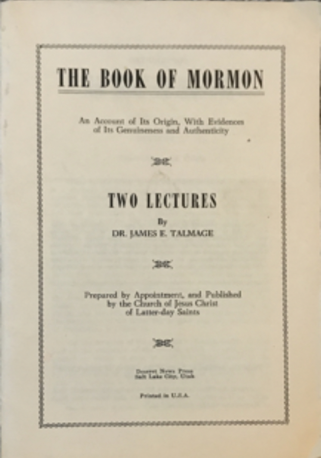 Dr. James E. Talmage ~ The Book of Mormon (no date)