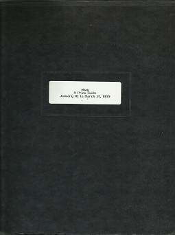 Large, oblong black book with exposed binding and a soft cover. Cover has almost no wear. Cover page has some pencil marks. Text throughout is clean, clear, and legible…………………….v1 Bx722