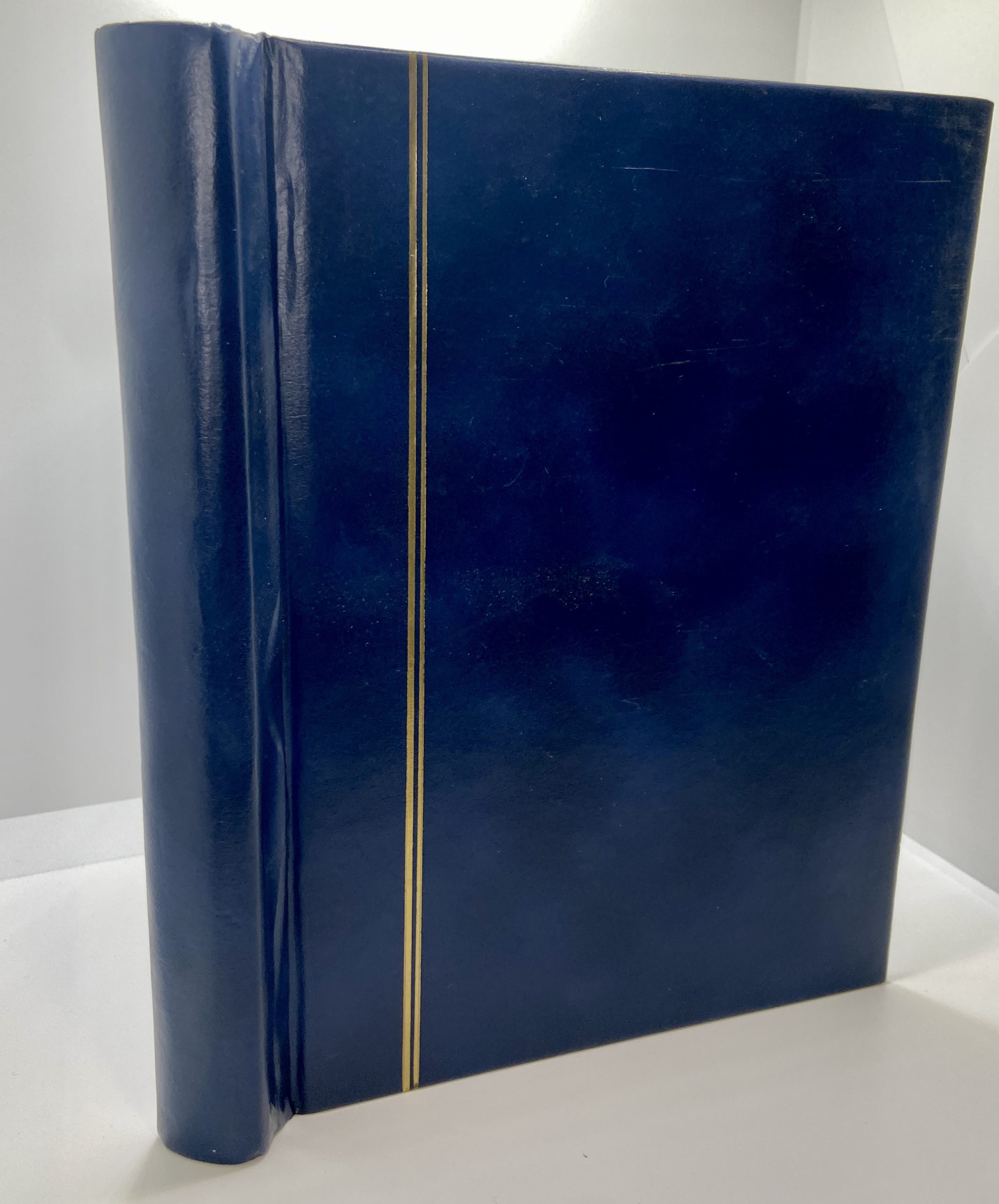 Good condition, Blue hard case with gold embossed design. Some discoloration and bent edges on the spine. Clear typewriter text without any markings. Pages edges slightly dirty.