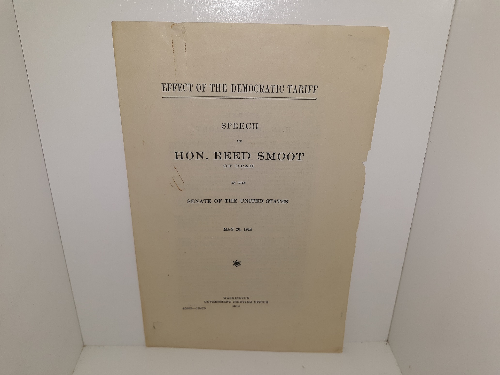 Effect of the Democratic Tariff: Speech of Hon. Reed Smoot of Utah in the Senate of the United States
