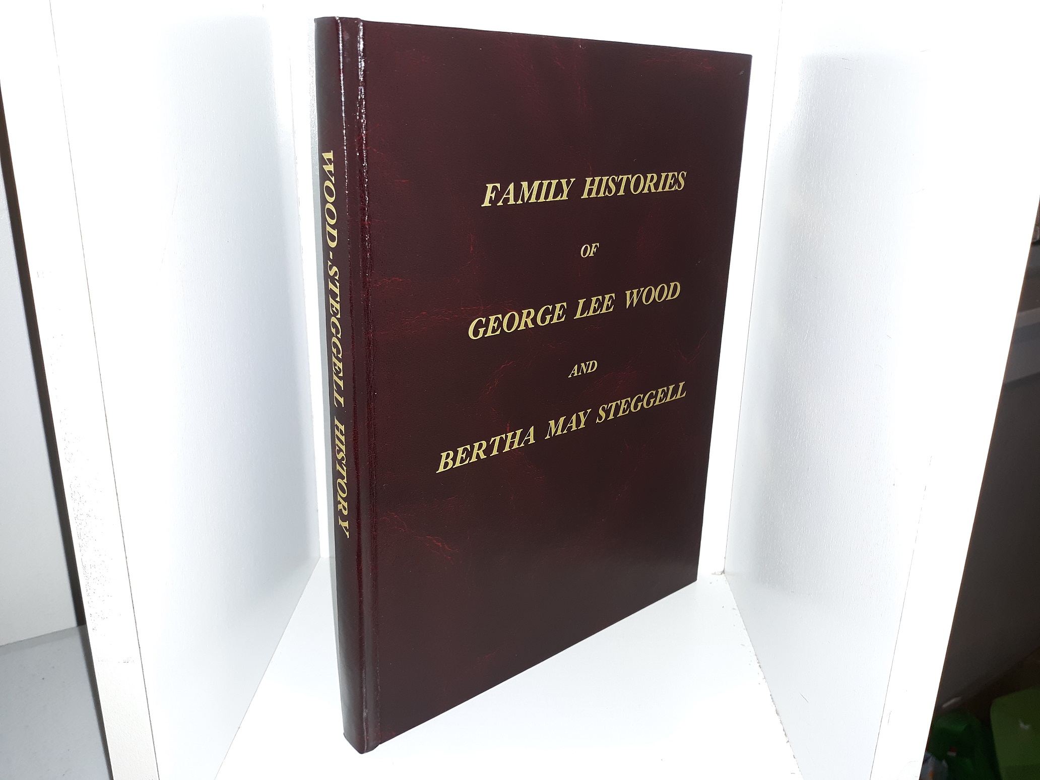 Good condition, large, thin, dark burgundy, bonded leather book. The cover has a bubble on the back, some scuffing at the corners, and a dent on one edge. The front flyleaf has writing in pencil. Text and illustrations throughout are clean, clear, and legible.