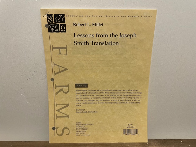 Foundation for Ancient Research and Mormon Studies ~ Lessons from the Joseph Smith Translation ~ Robert. L. Milet quantity