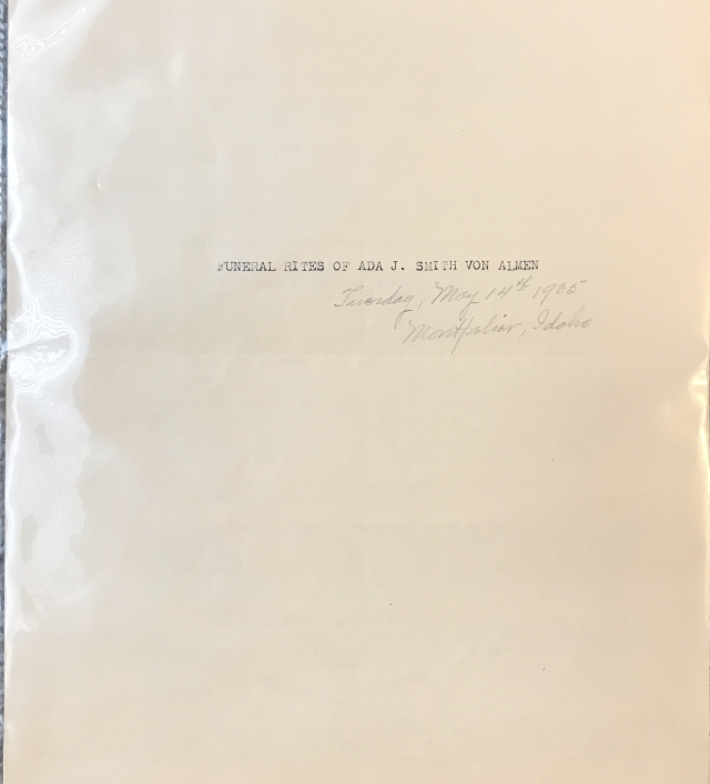 Funeral Rites of Ada J. Smith Von Almen ~ 1935