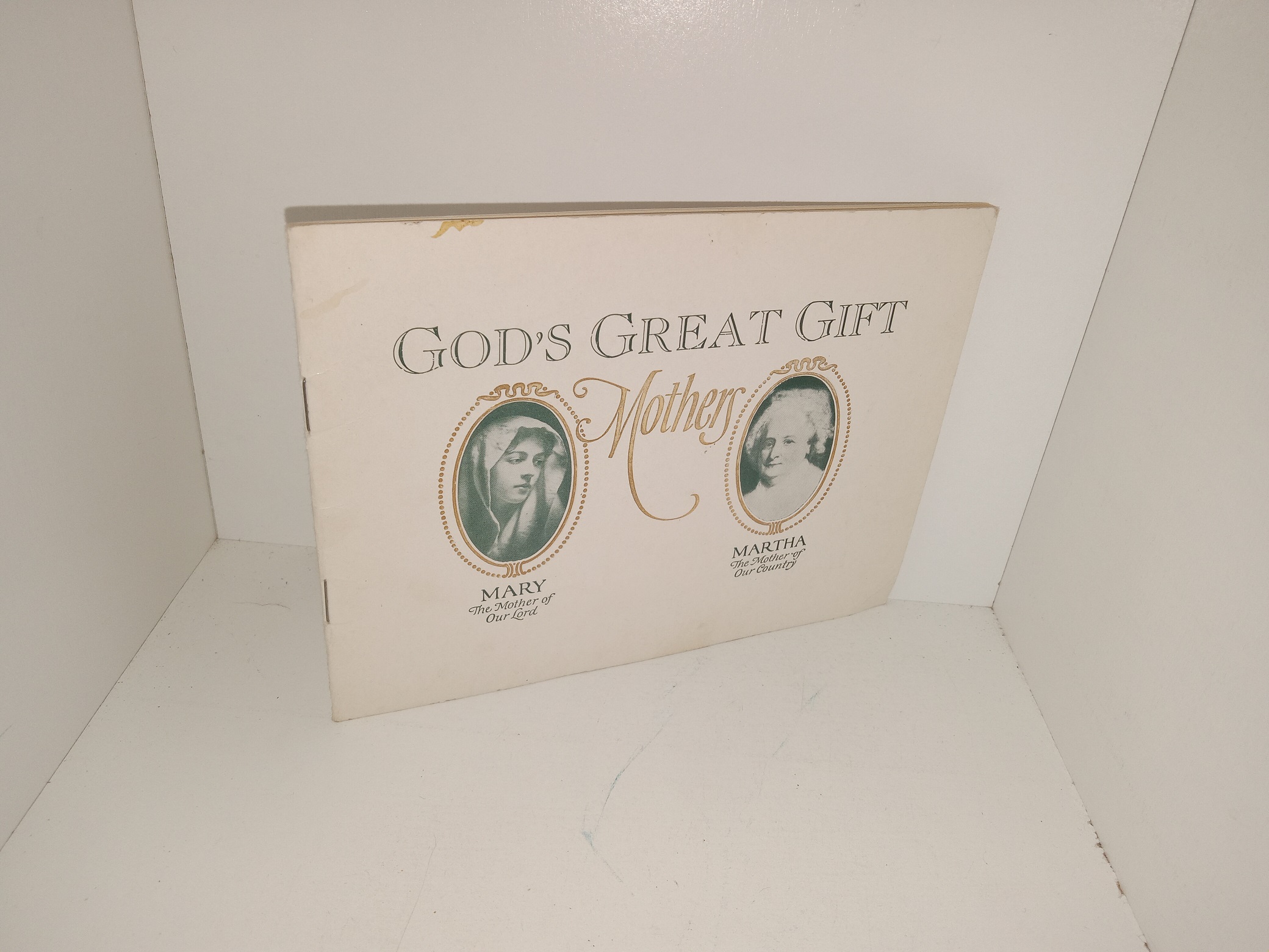 Fair condition, small, thin, staple-bound, off-white softcover. The cover has some stains, creases, and wrinkling. The front inside cover has writing in pen. The first page has writing in pencil. Text throughout is clean, clear, and legible.