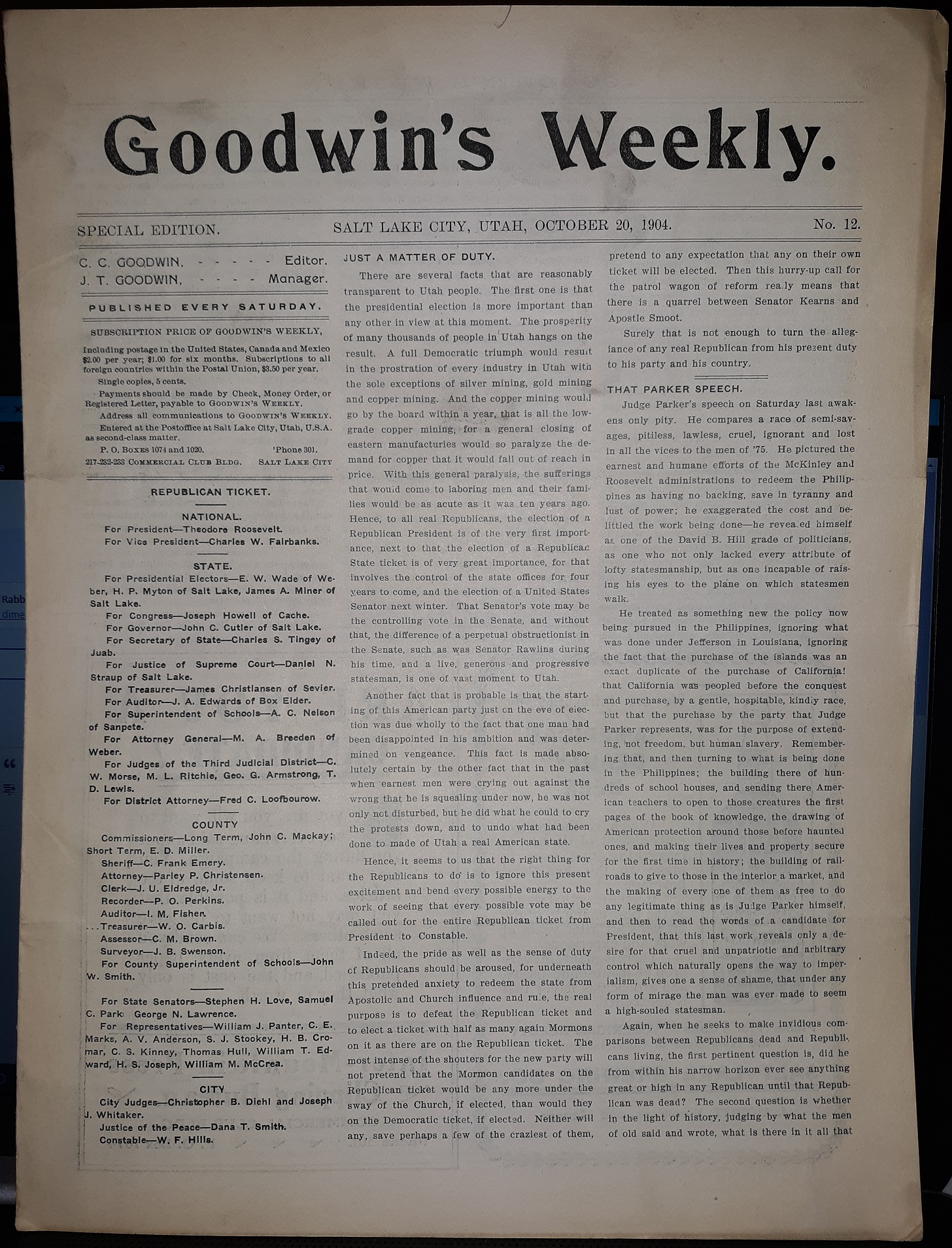 Goodwin’s Weekly Newspaper: No. 12, October 20, 1904