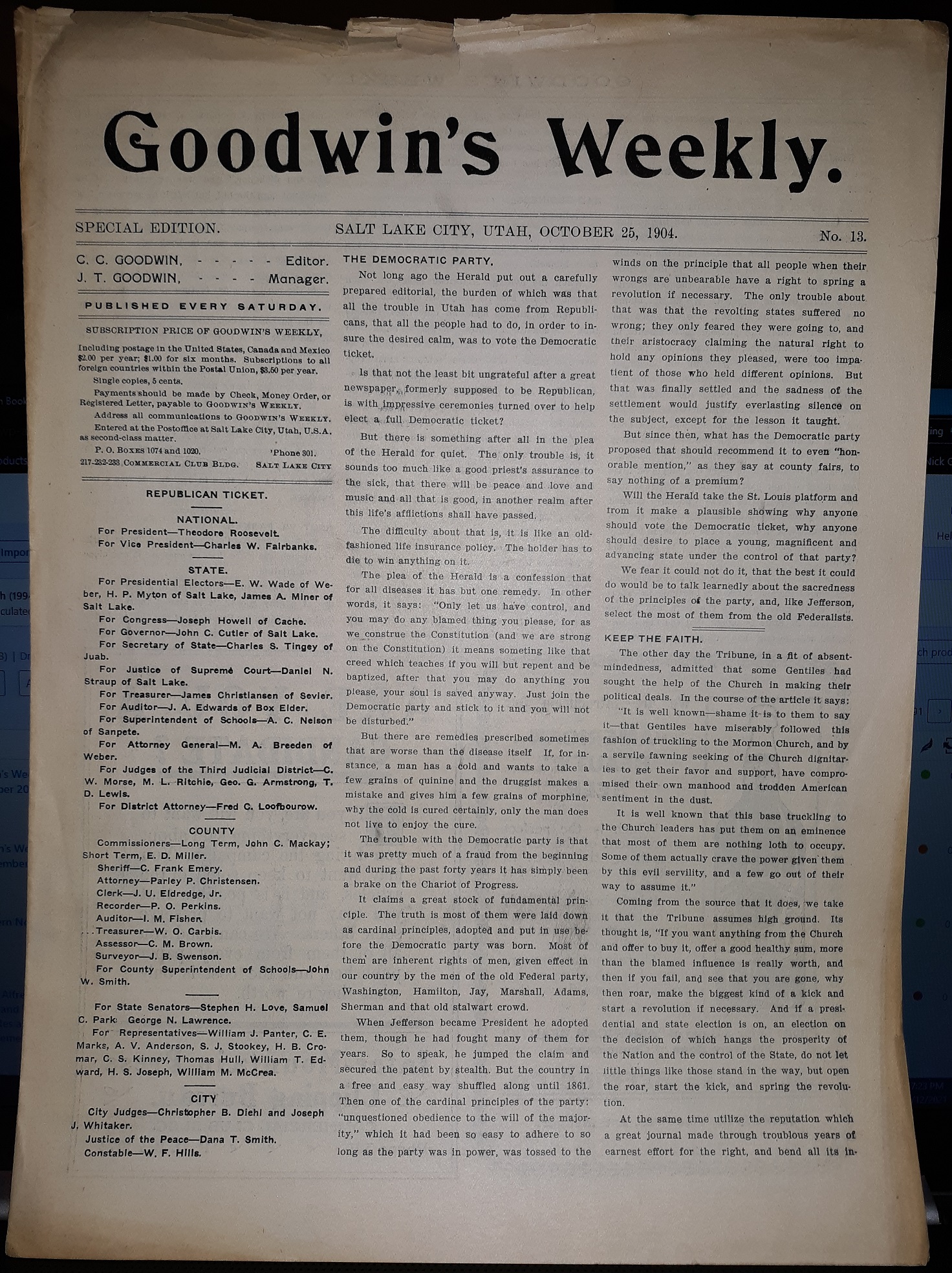 Goodwin’s Weekly Newspaper: No. 13, October 25, 1904