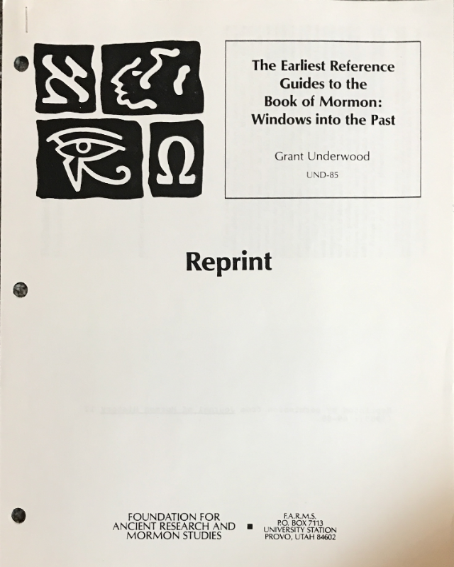/ Grant Underwood ~ The Earliest Reference Guides to the Book of Mormon: Windows into the Past ~ UND-85
