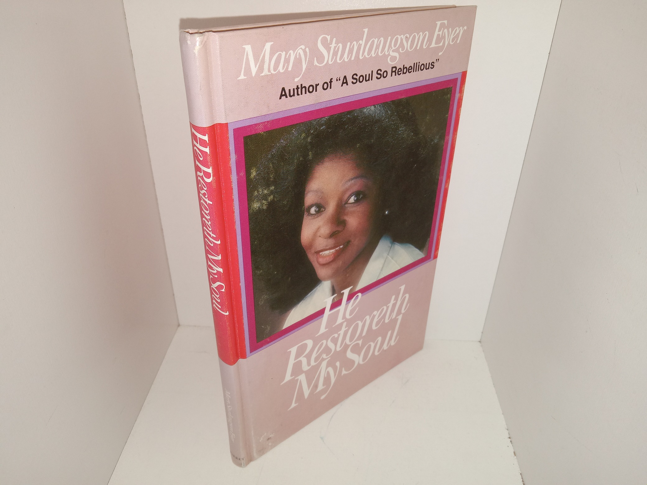 Fair condition hardcover with a pale pink and red spine, and with no dust jacket. The cover has heavy scuffing, some fading, and adhesive residue. The front flyleaf has writing in pen and pencil. Text throughout is clean, clear, and legible.