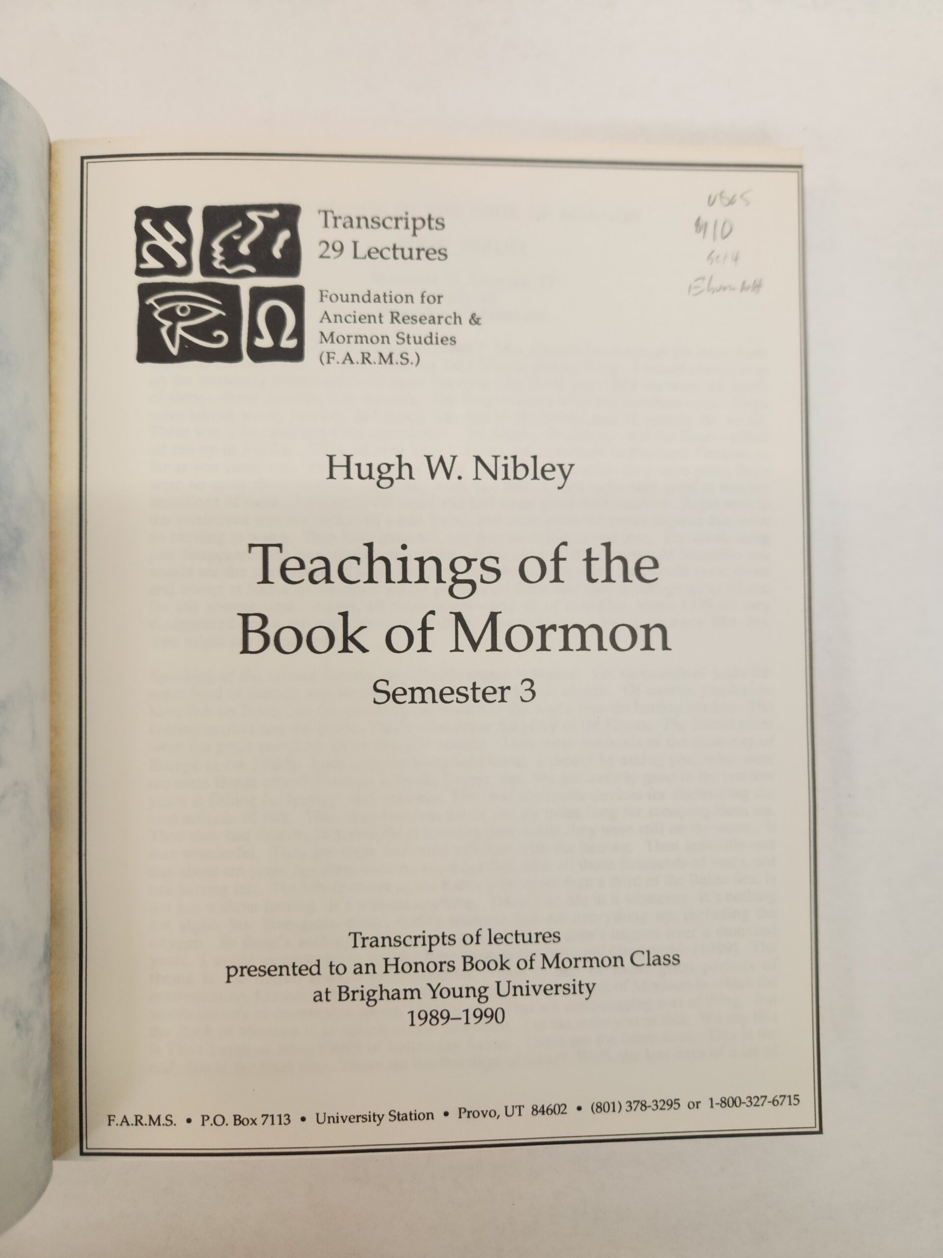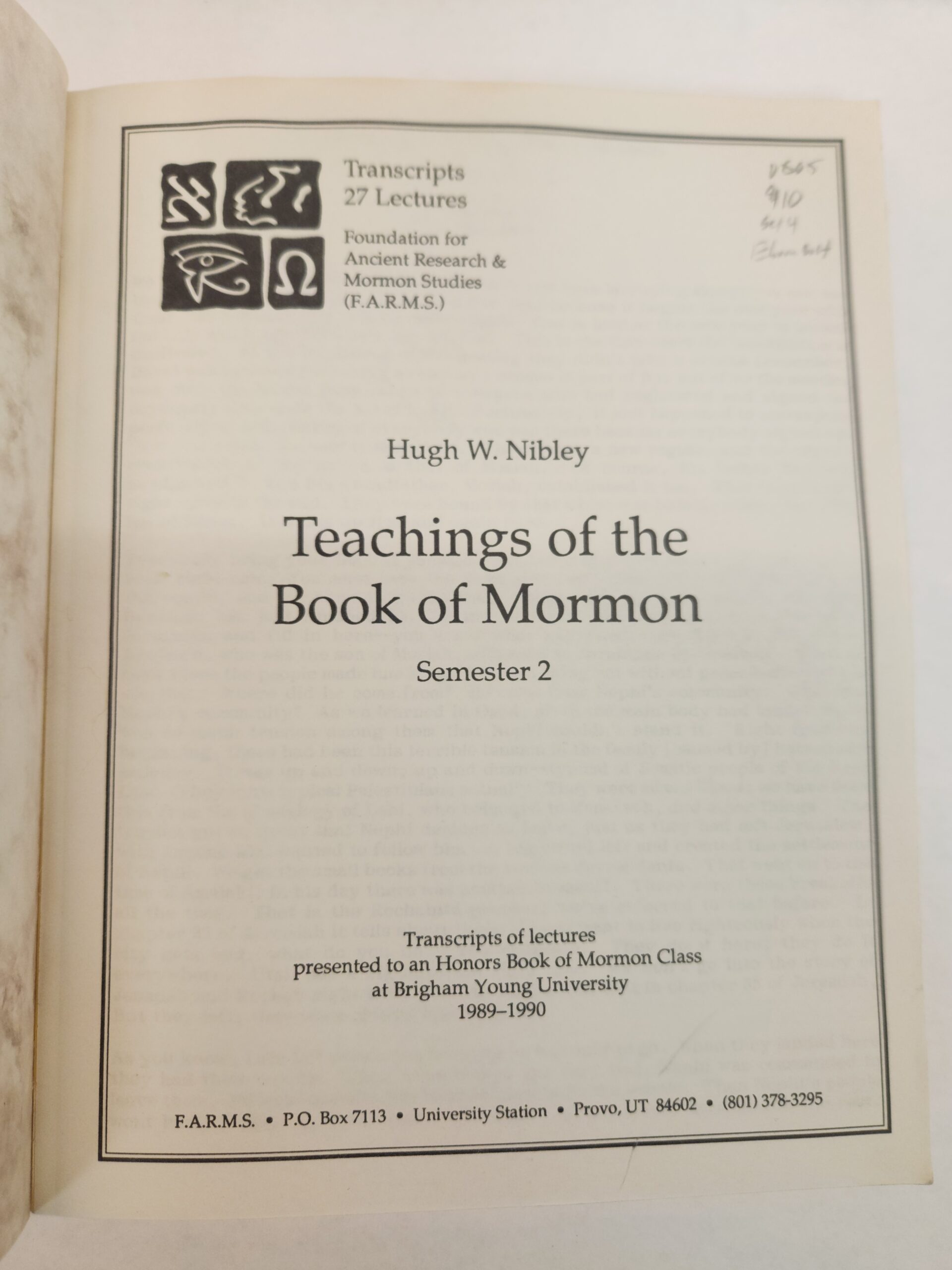 Hugh W. Nibley Teachings of the Book of Mormon:: Semester 1, Transcripts of lectures presented to an Honors Book of Mormon Class at Brigham Young University 1989-1990 (4 Volume set, Semesters 1 – 4, Paperback)