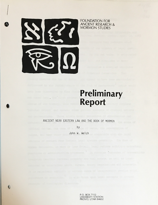 John W. Welch ~ Ancient Near Eastern Law and the Book of Mormon