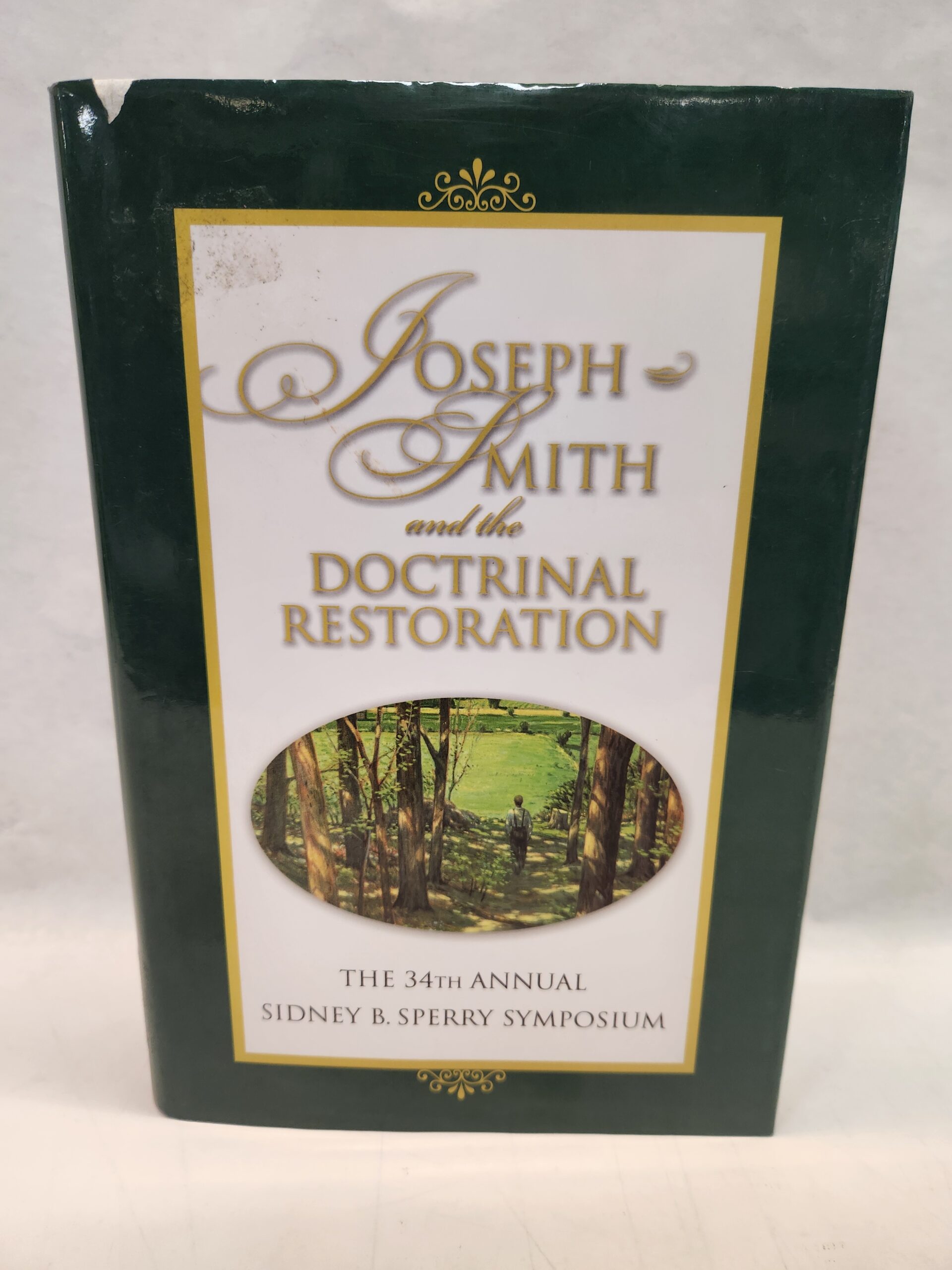 Joseph Smith and the Doctrinal Restoration:: The 34th Annual Sidney B. Sperry Symposium (2005, Hardcover w/ Dust Jacket) No writing or marks on the pages. Binding is good. Corners and edges show some shelf wear with small tear/scuff on top of dust jacket. Cover has some sticker residue on front cover top left corner and on the bottom portion of the spine. Cover, front and back, has some light scratch marks.