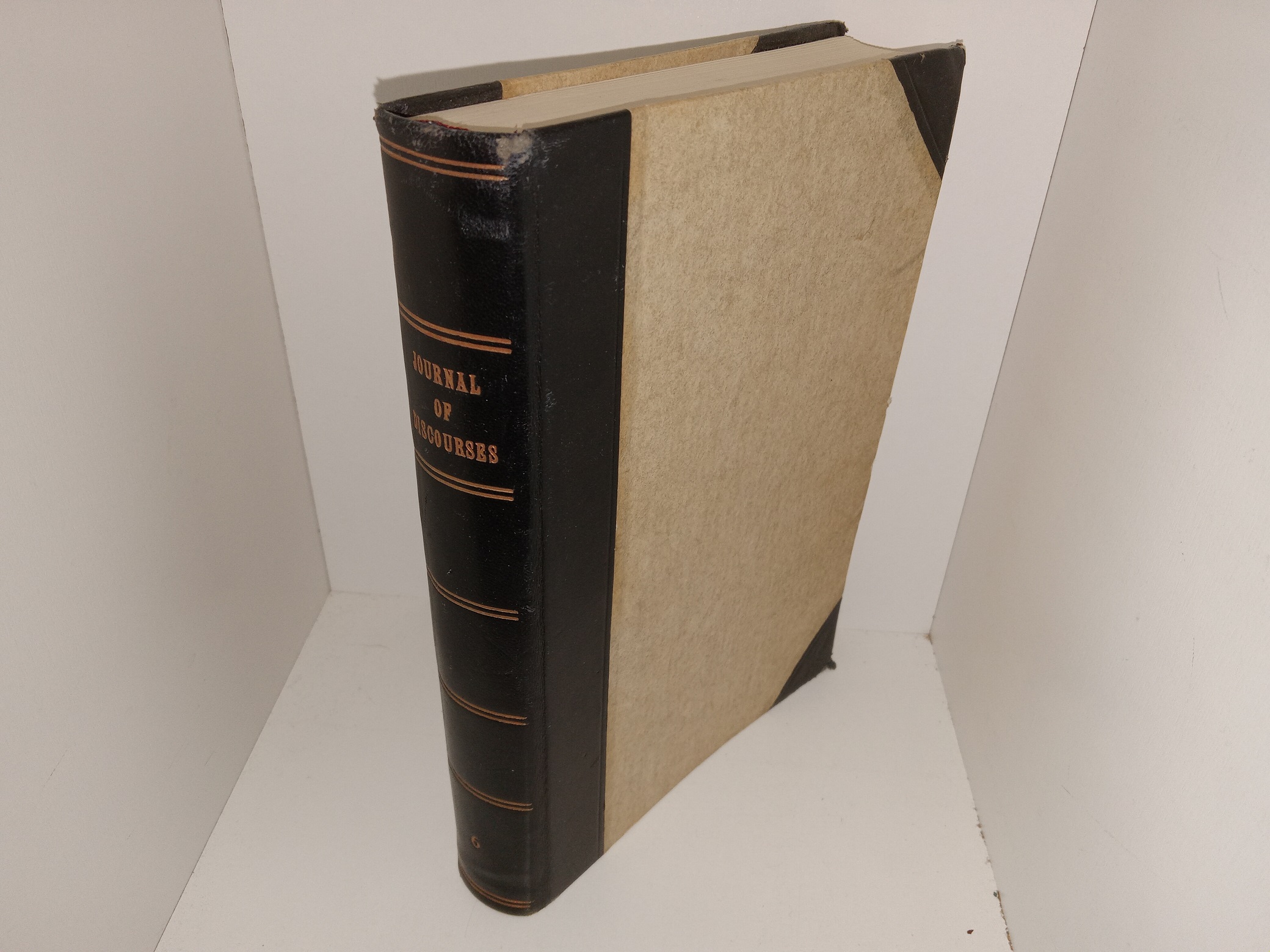 Fair condition, 3/4 leather book with a black spine. The cover has some tears, scuffing, stains, tiny dents, some fraying, slightly crushed corners, and some warping. The front flyleaf has writing in pencil. Some pages have slight indentations. Text throughout is clean, clear, and legible.