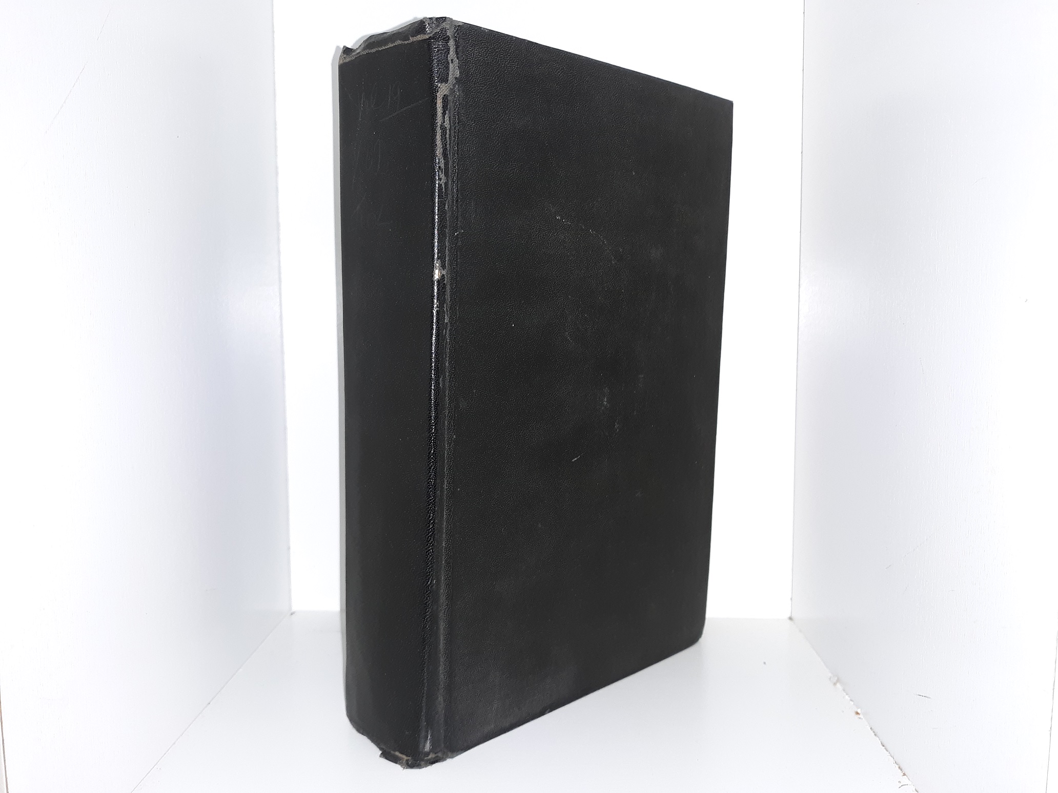 Fair condition, black hardcover with no dust jacket. The cover has heavy scuffing, a tiny tear on one edge of the spine, some faint writing on the spine in pen. The inside front covers have stains, an inscription in pen. The flyleaf has the top right corner cut off, and writing in pencil. The title page is missing. On the pages where the contents of the section were printed on a separate sheet and pasted to those pages there is wrinkling. Text and illustrations throughout are clean, clear, and legible.