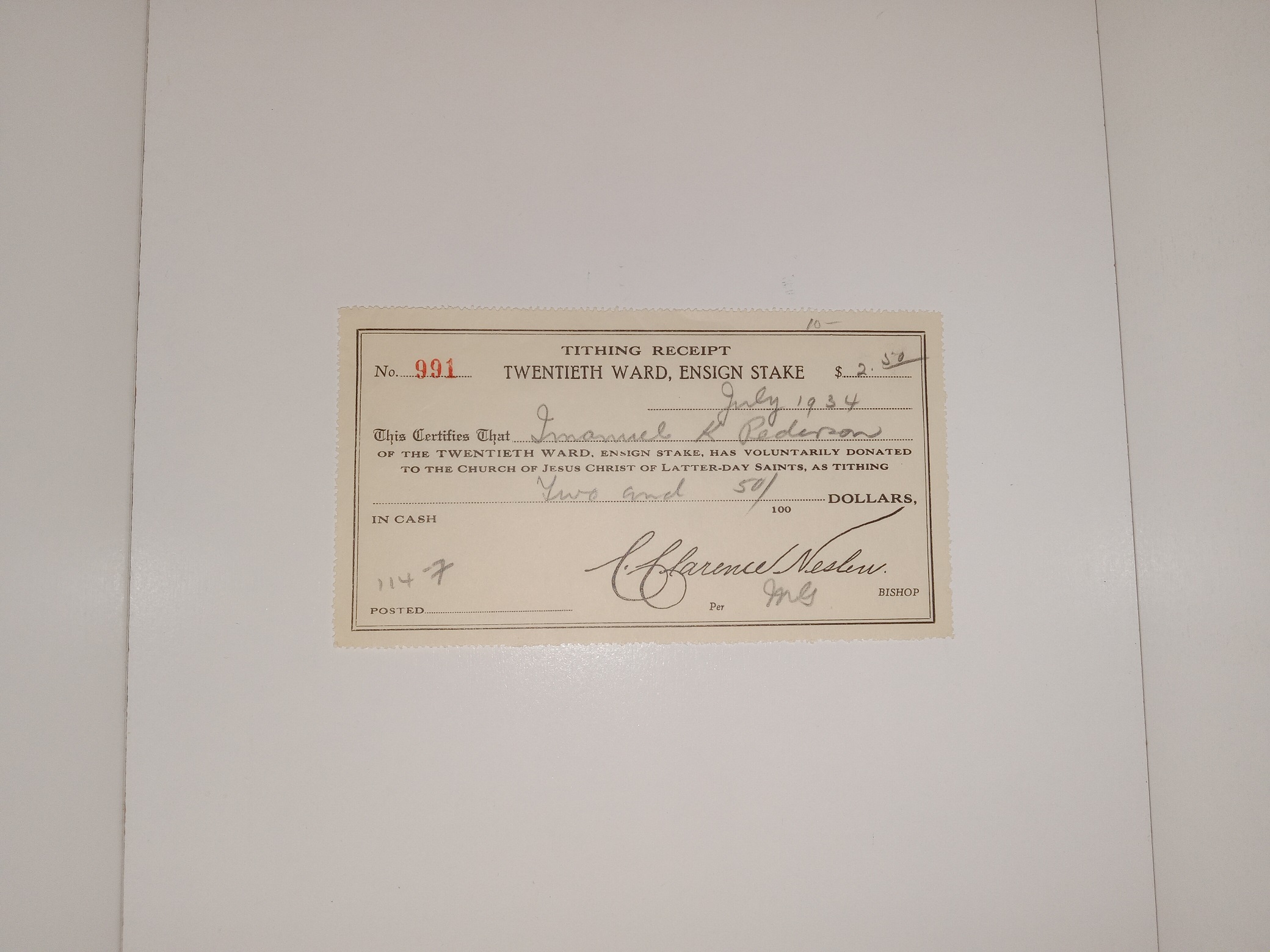 Fair-good condition, receipt. The receipt has been filled out in pencil, pen, and has an ink stamp.