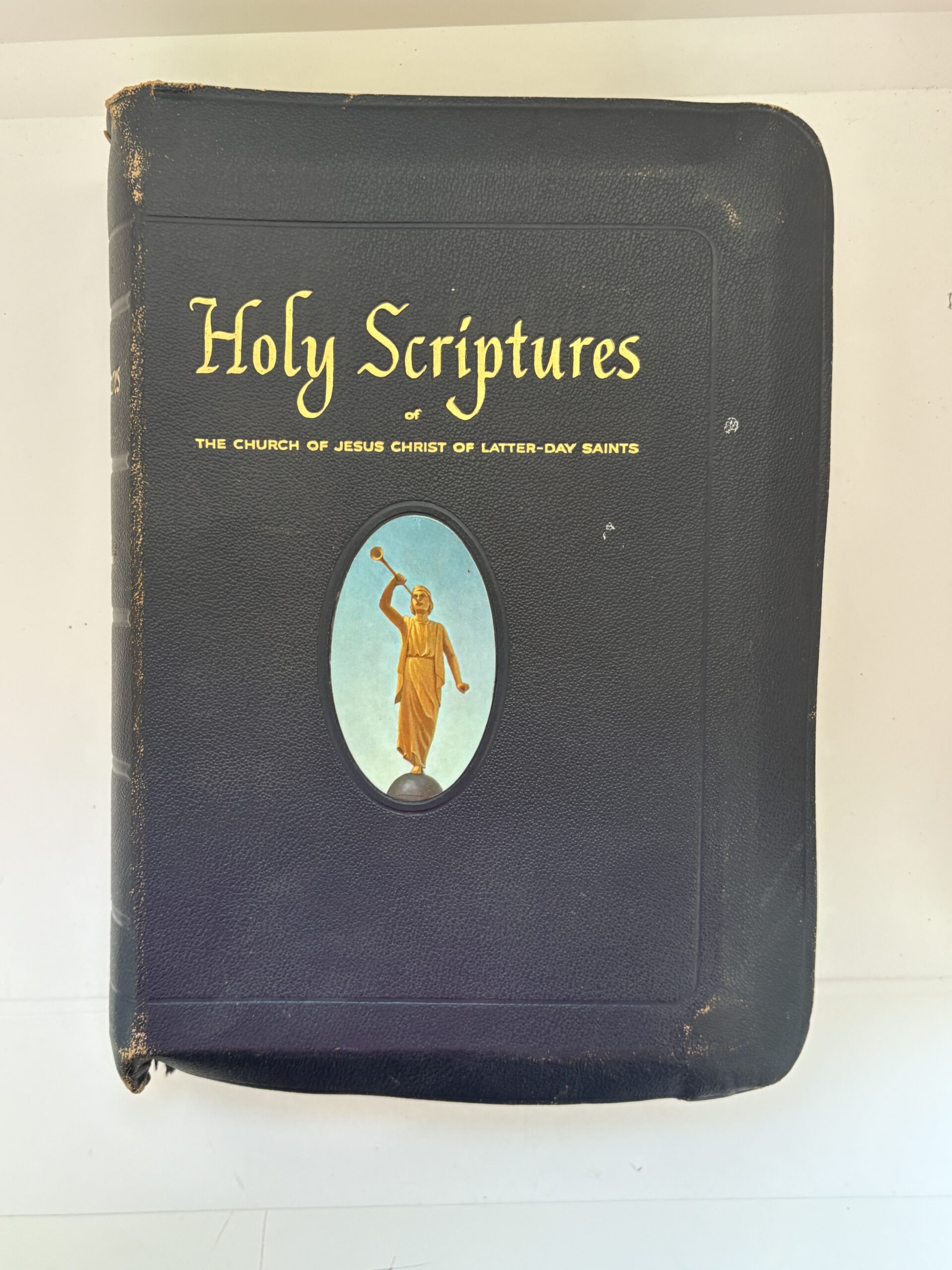 Good condition leather hardcover. Fraying and cracking around the corners. Blemishes, fraying, and bending on the spine. Worn page edges with some staining.