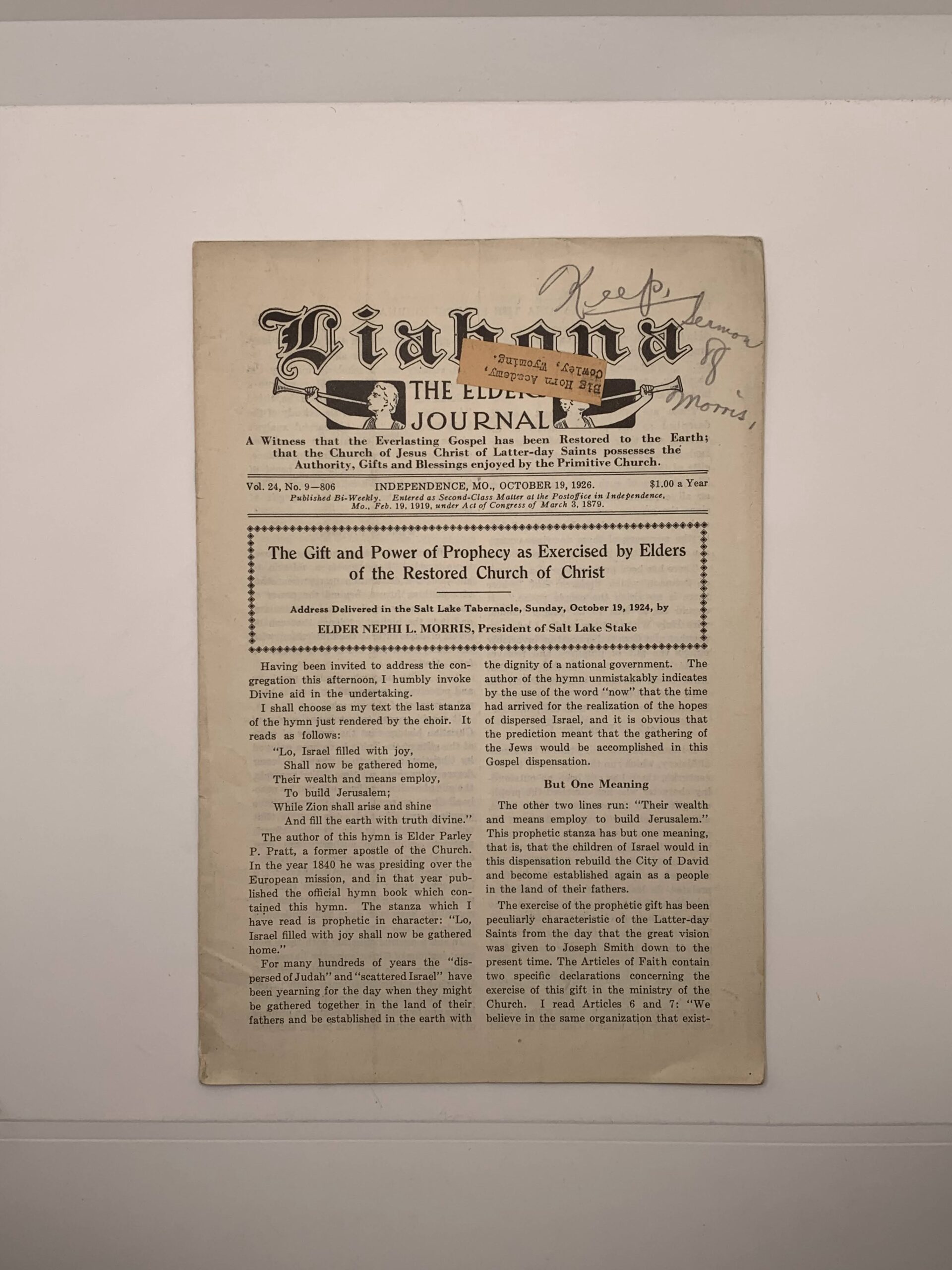 Liahona (Elders’ Journal) Vol 24 No 9 October 19, 1926