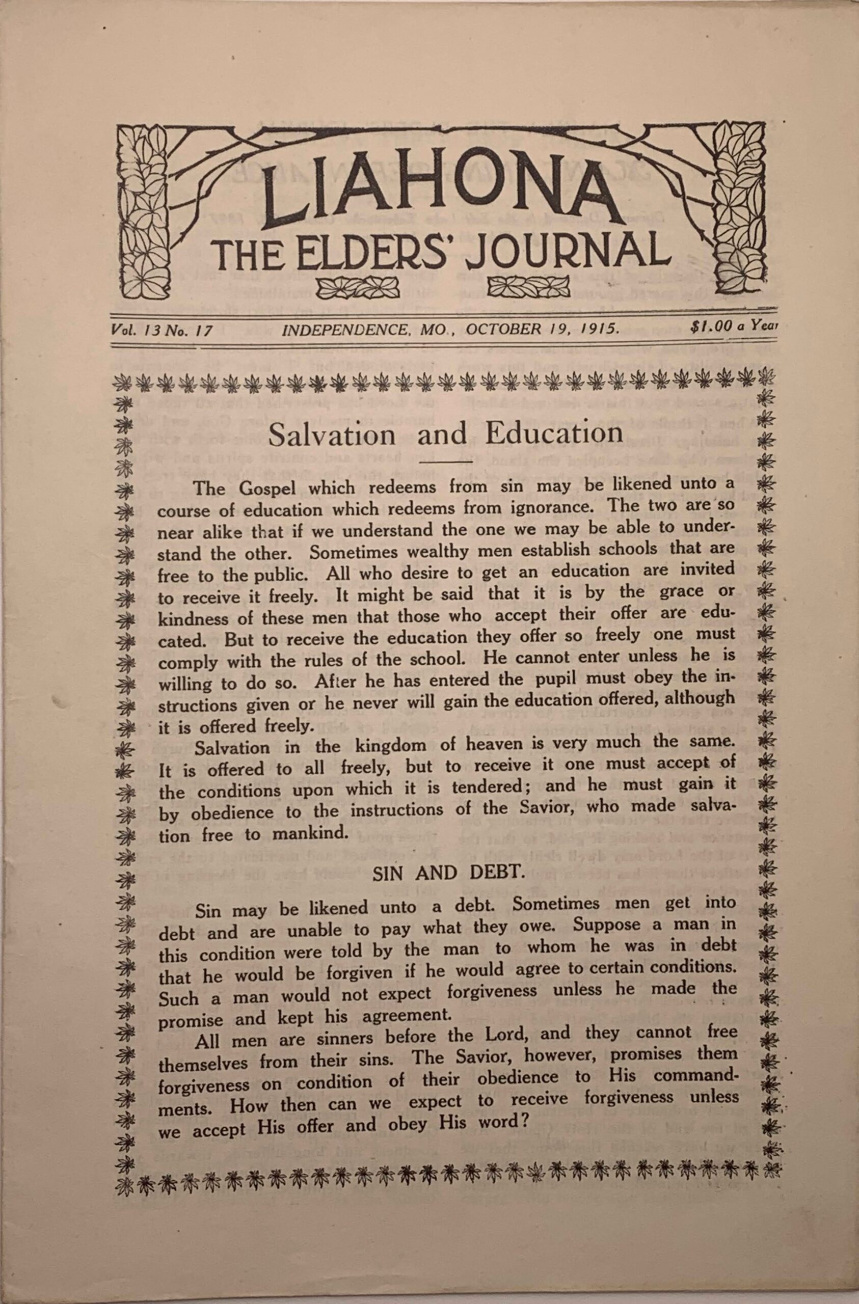 Liahona Vol. 13 No. 17 October 19, 1915