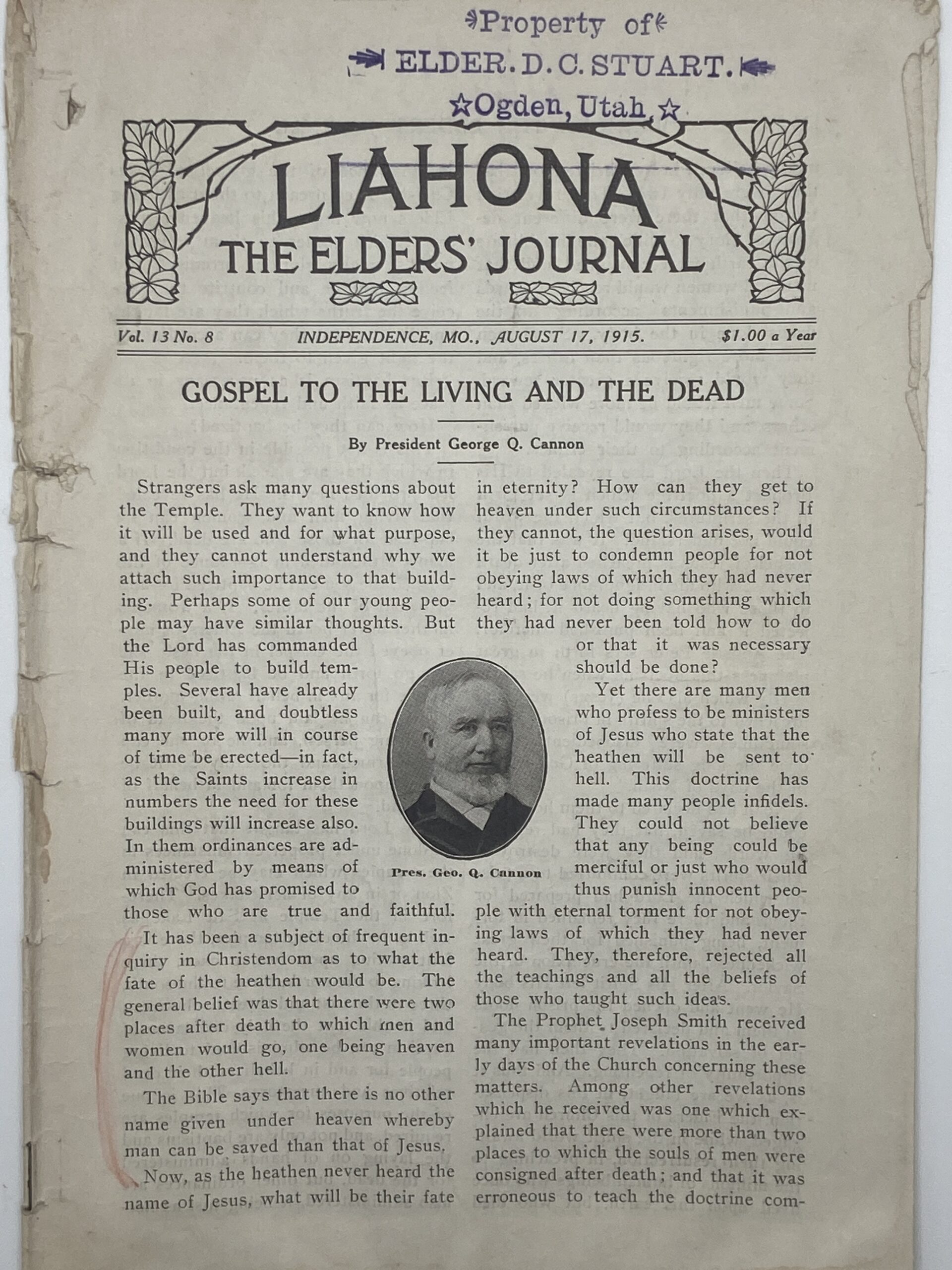 Liahona Vol. 13 No. 8 August 17, 1915
