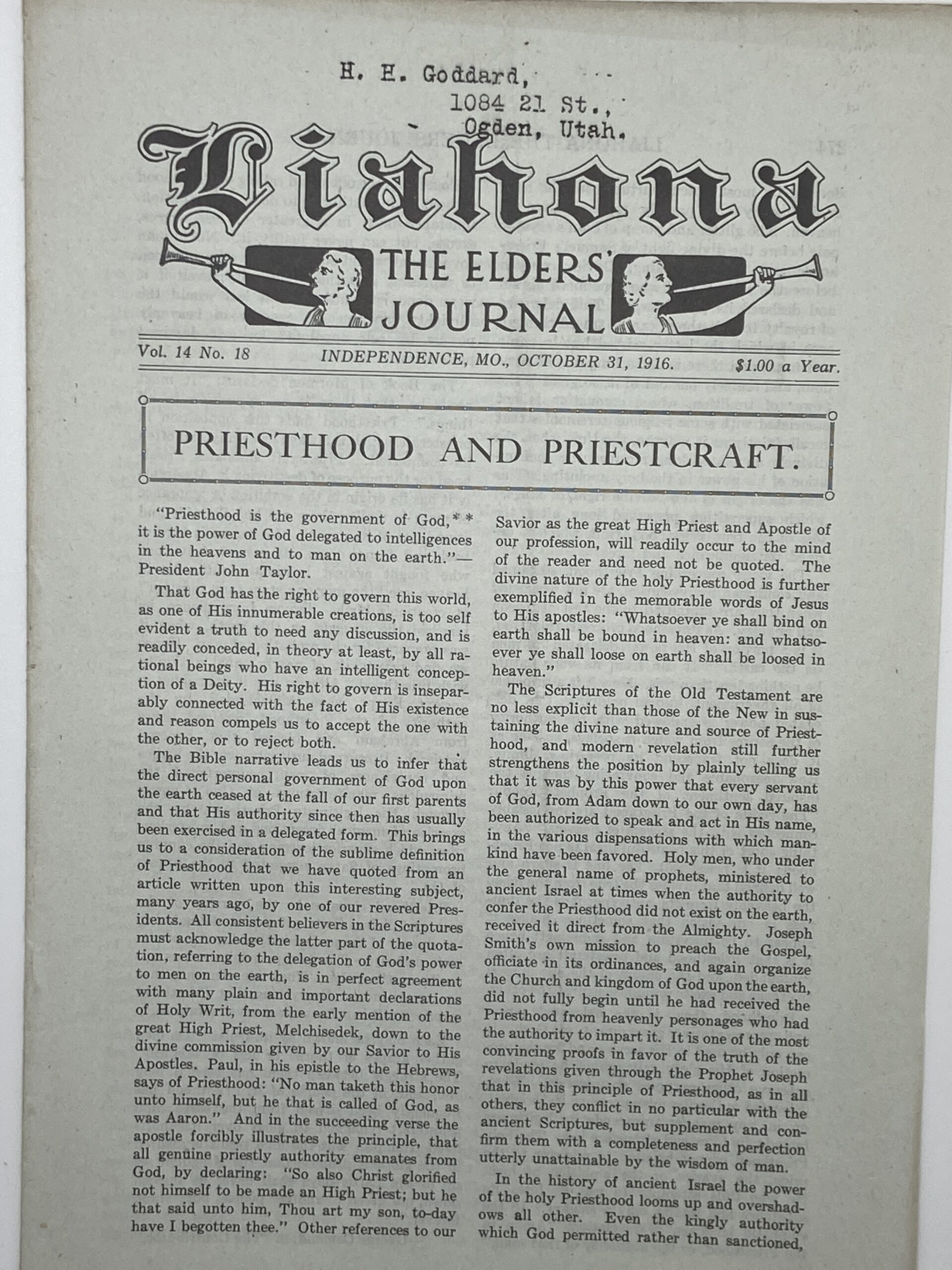 Liahona Vol. 14 No. 18 October 31, 1916