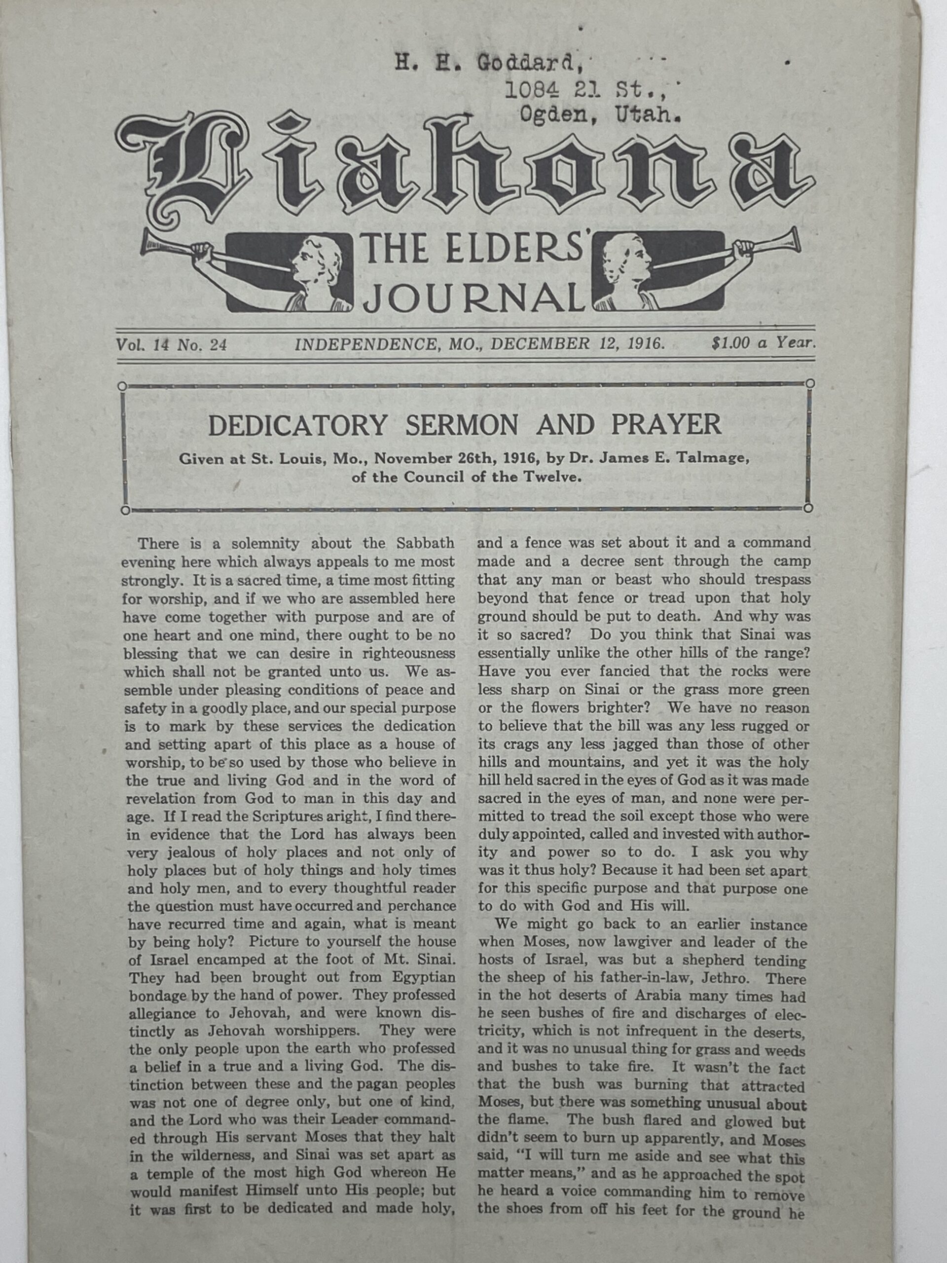 Fair condition staple bound pamphlet/magazine with signs of age. Bent/torn Edges. Stains and discoloration on the covers. Address stamped on front cover. Clean text.