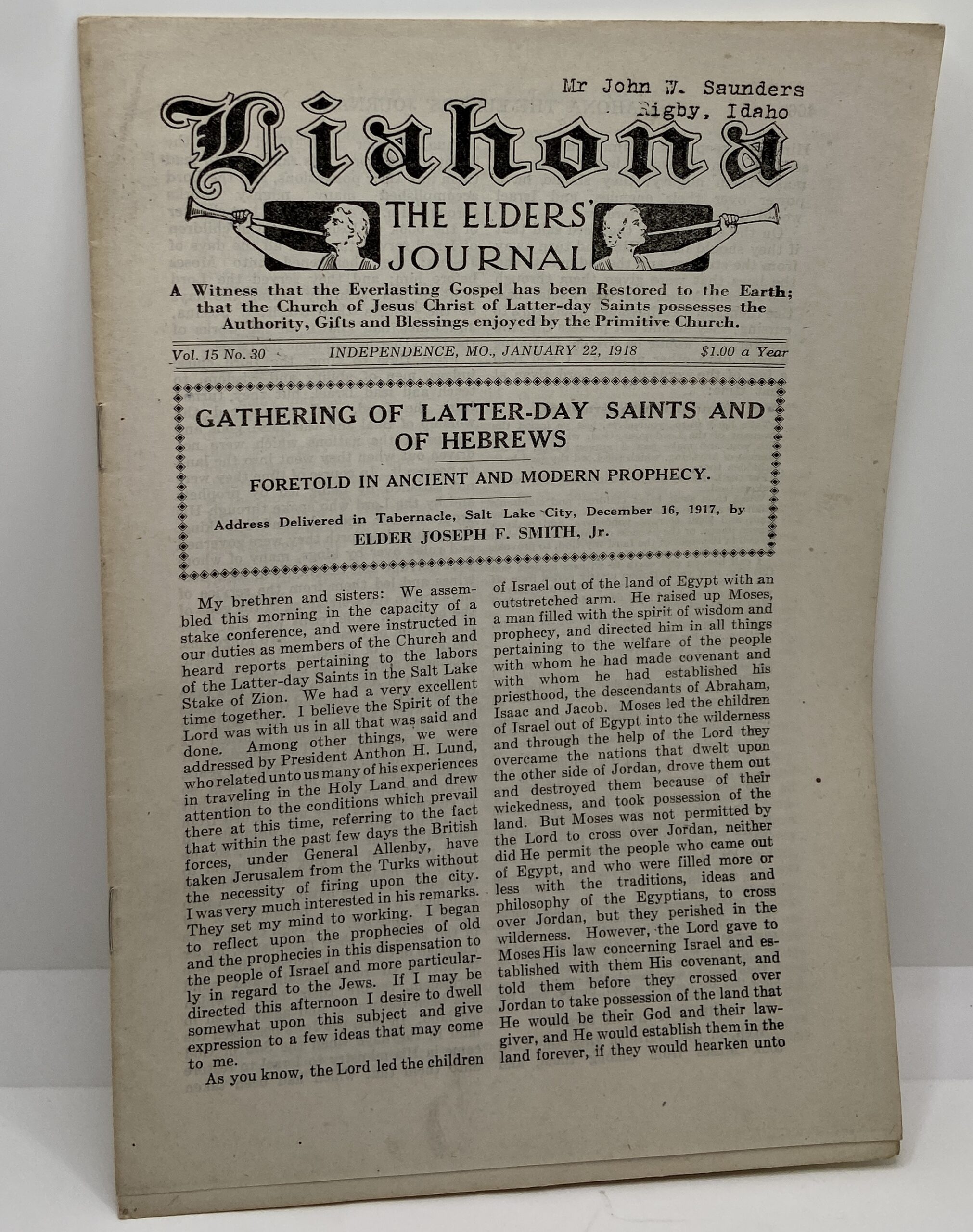 Fair condition staple bound pamphlet/magazine with signs of age. Bent/torn Edges. Stains and discoloration on the covers. Address stamped on front cover. Clean text.