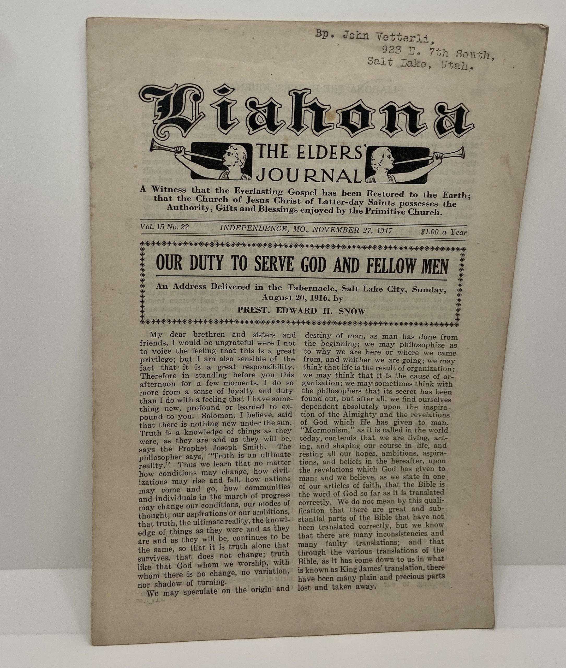 Liahona Vol. 15 No. 22 November 27, 1917