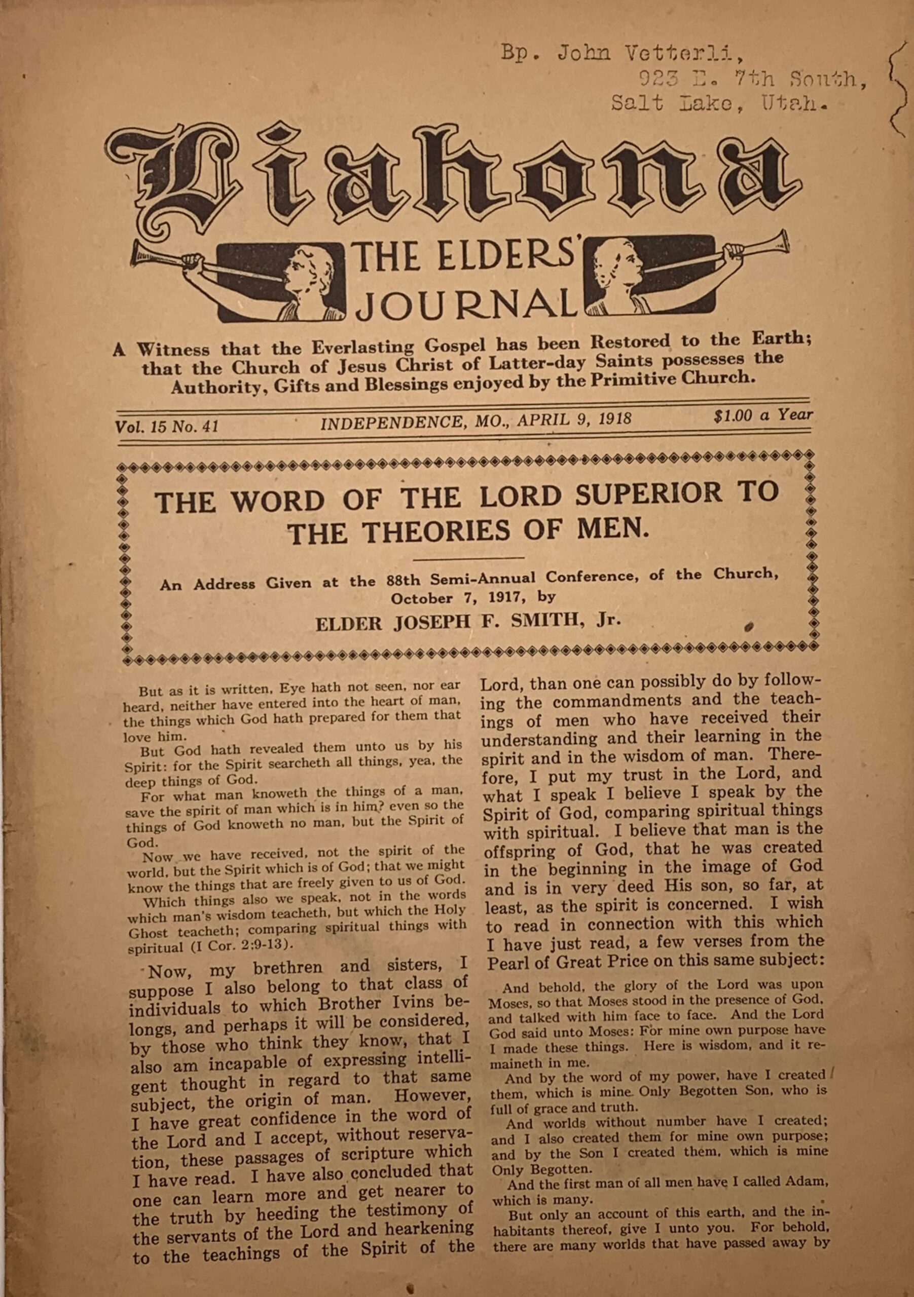 Fair condition staple bound pamphlet/magazine with signs of age. Bent/torn Edges. Address sticker on front cover. Stains and discoloration on the covers. Clean text.
