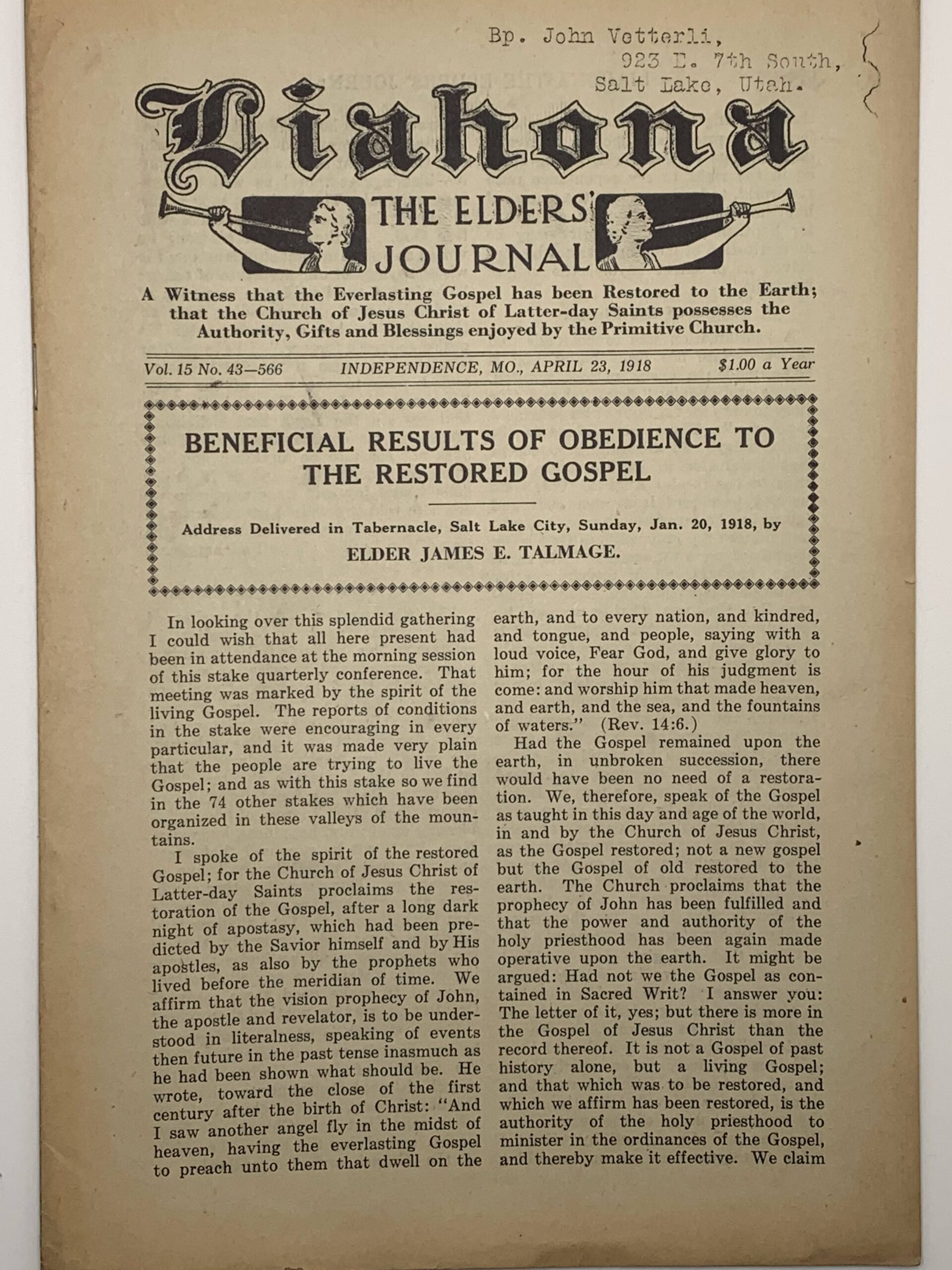 Fair condition staple bound pamphlet/magazine with signs of age. Bent/torn Edges. Address sticker on front cover. Stains and discoloration on the covers. Clean text.