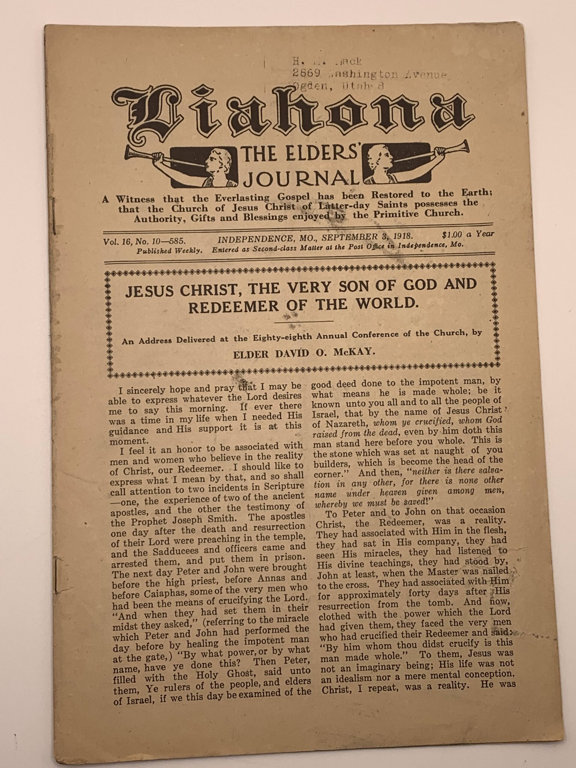 Fair condition staple bound pamphlet/magazine with signs of age. Bent Edges. Address sticker on front cover. Stains and discoloration on the covers. Clean text.
