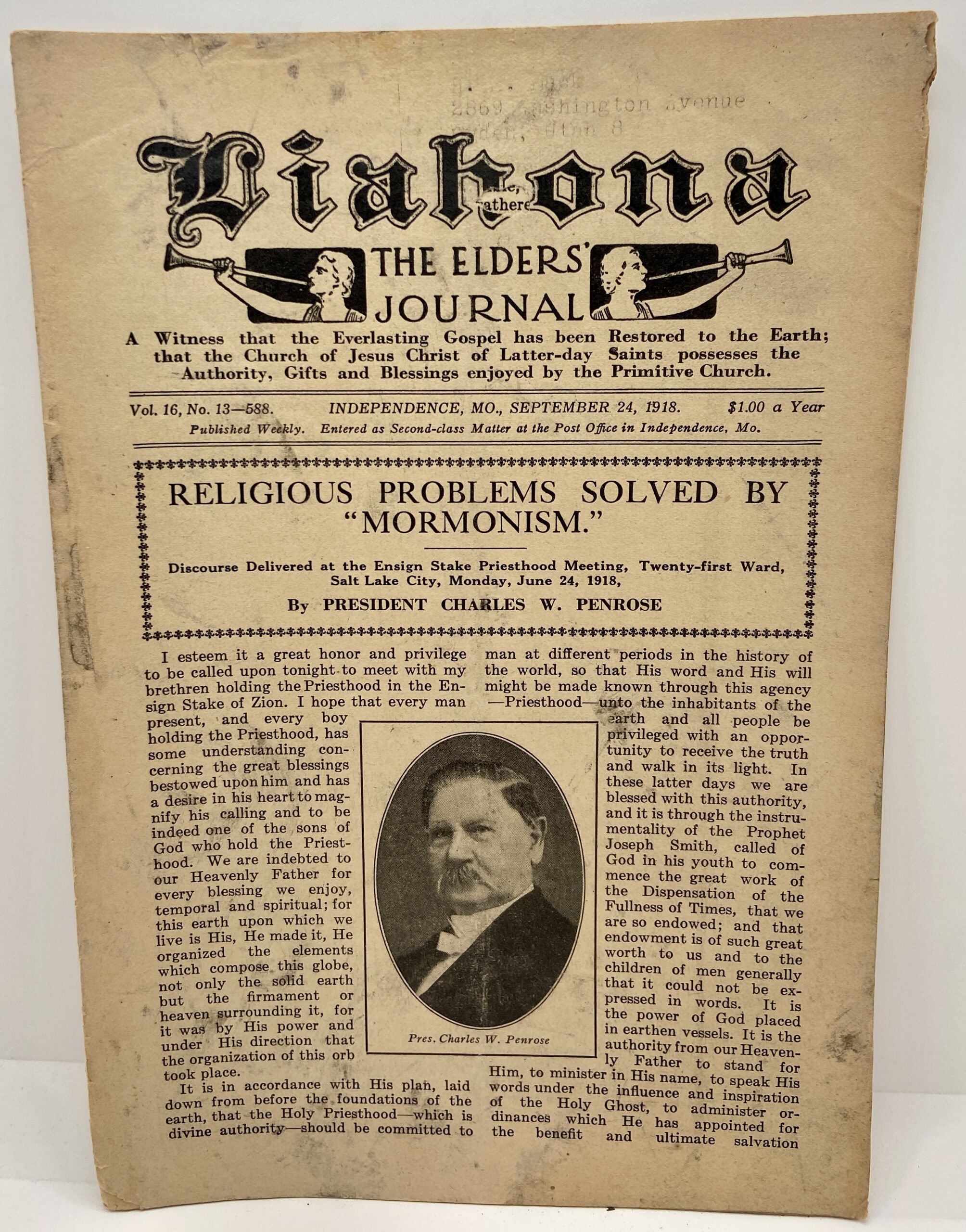 Fair condition staple bound pamphlet/magazine with signs of age. Address stamp on front cover. Bent back cover and tear in spine. Stains and discoloration on the covers. Clean text.