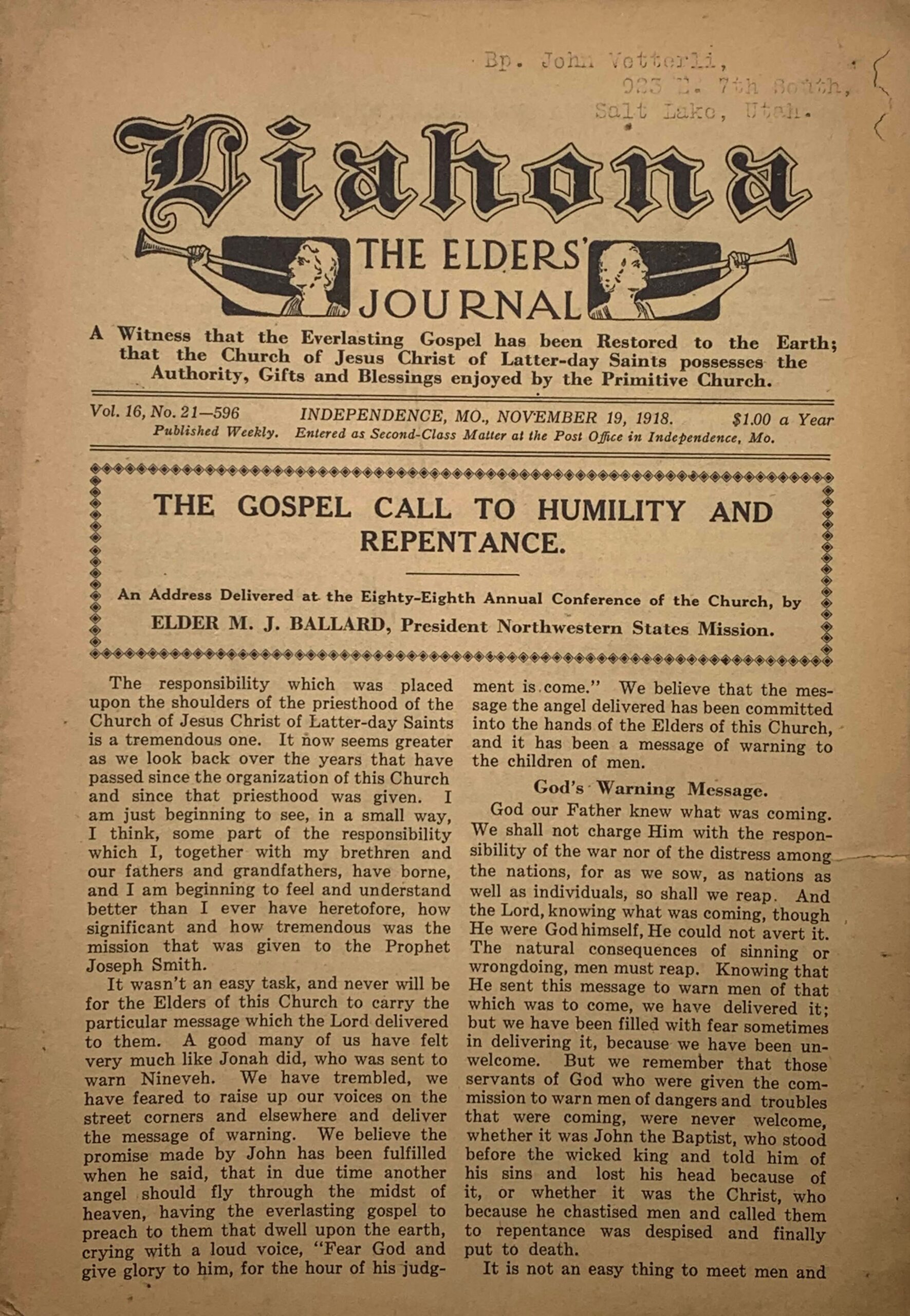 Fair condition staple bound pamphlet/magazine with signs of age. Bent/torn Edges. Address sticker on front cover. Stains and discoloration on the covers. Clean text.
