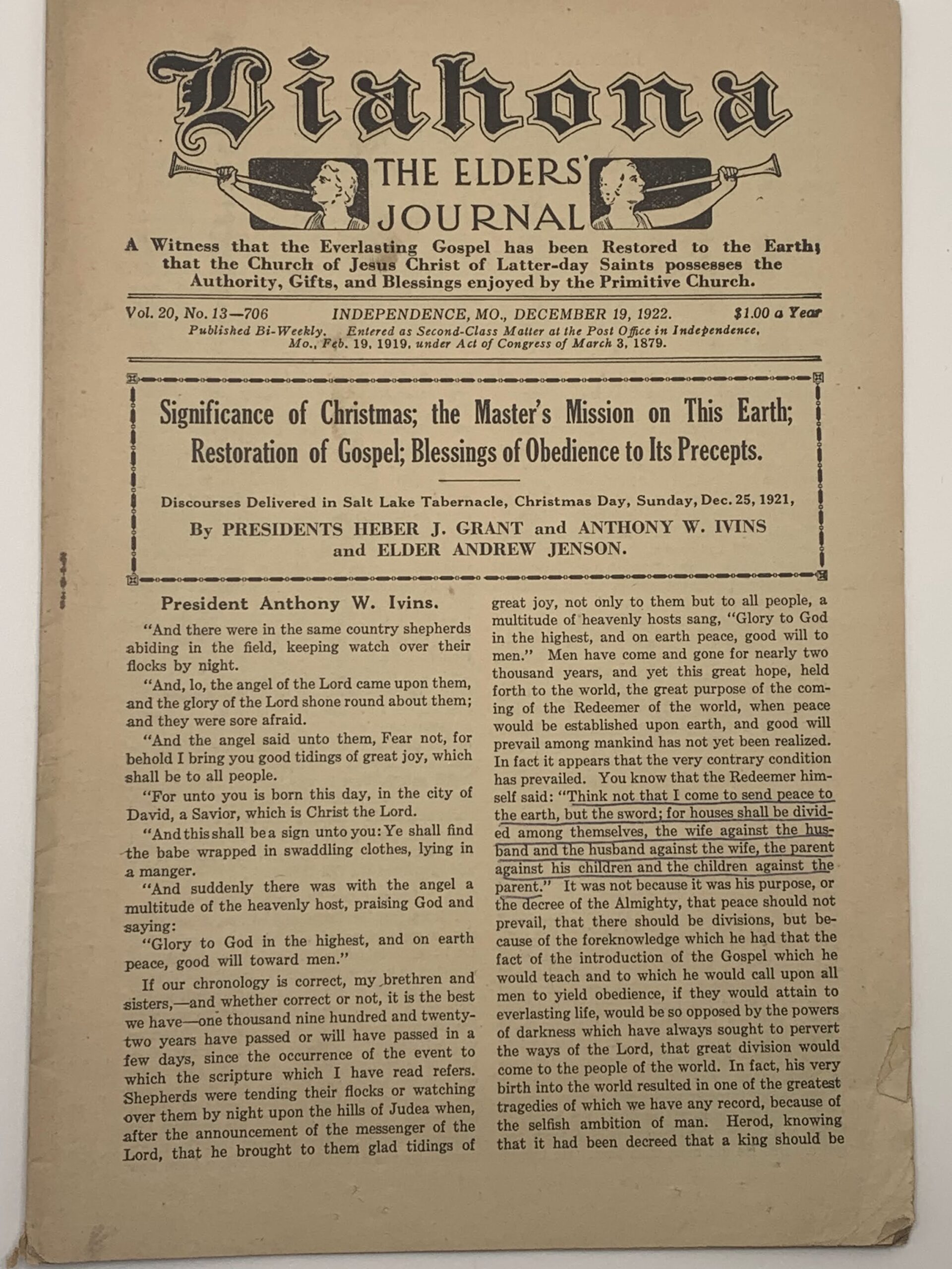Liahona Vol. 20 No. 13 December 19, 1922