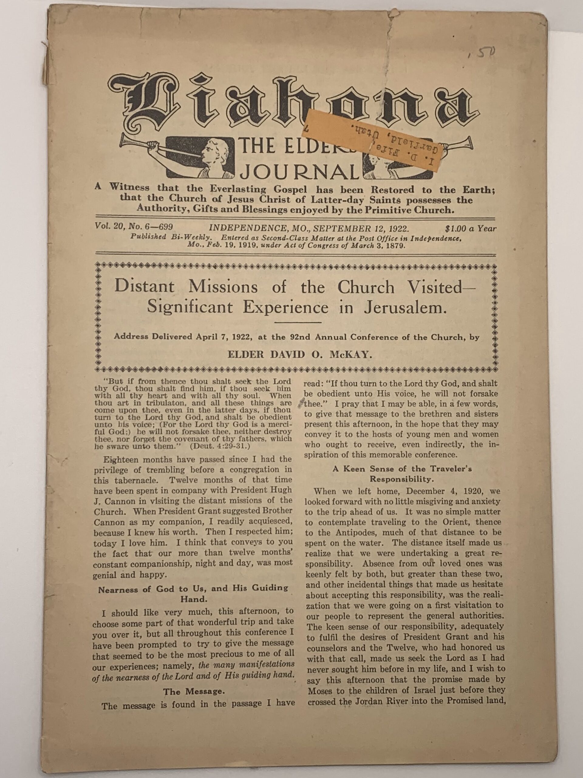 Fair condition staple bound pamphlet/magazine with signs of age. Bent/torn Edges. Address sticker on front cover. Stains and discoloration on the covers. Clean text.