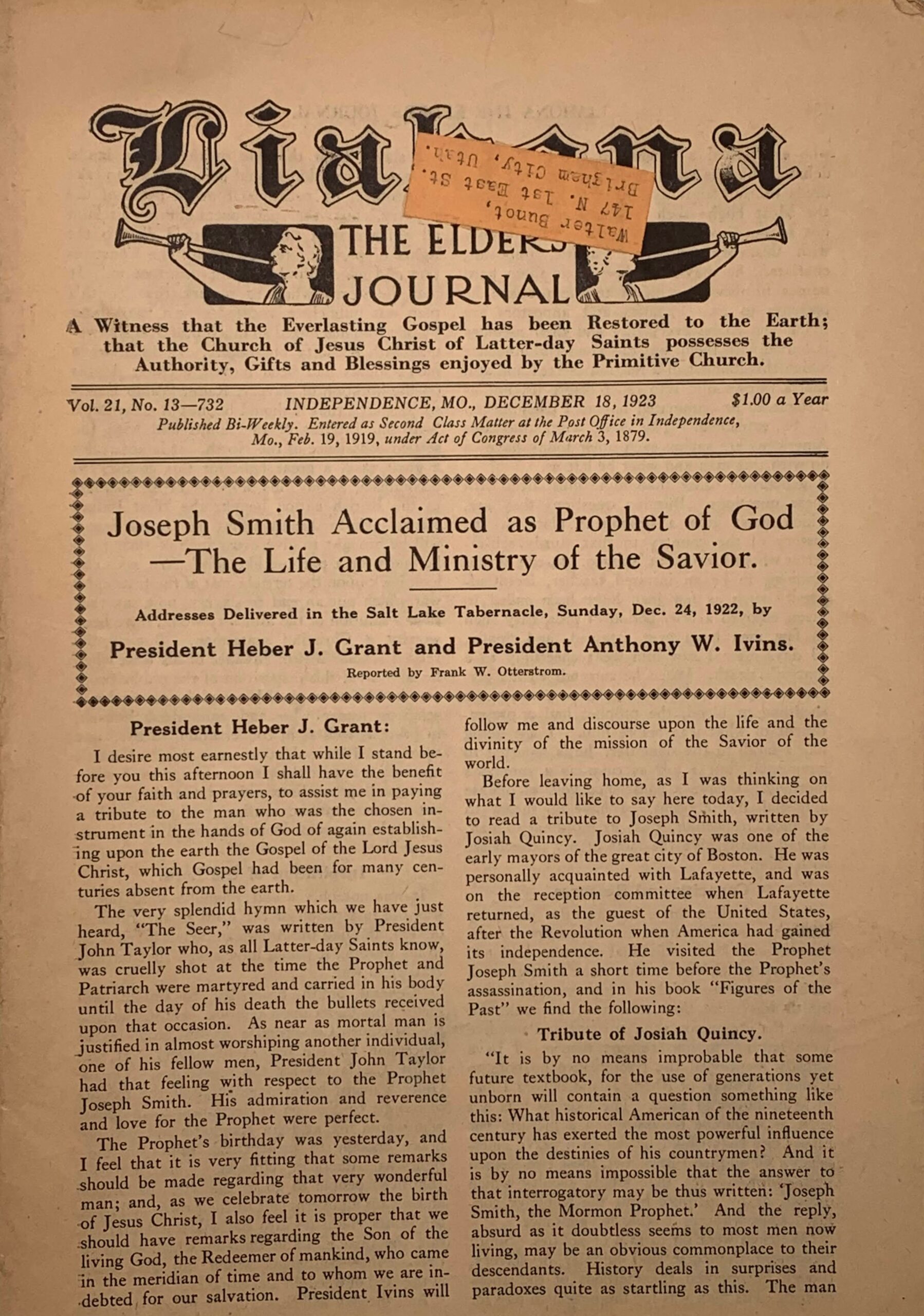 Fair condition staple bound pamphlet/magazine with signs of age. Bent/torn Edges. Address sticker on front cover. Stains and discoloration on the covers. Clean text.