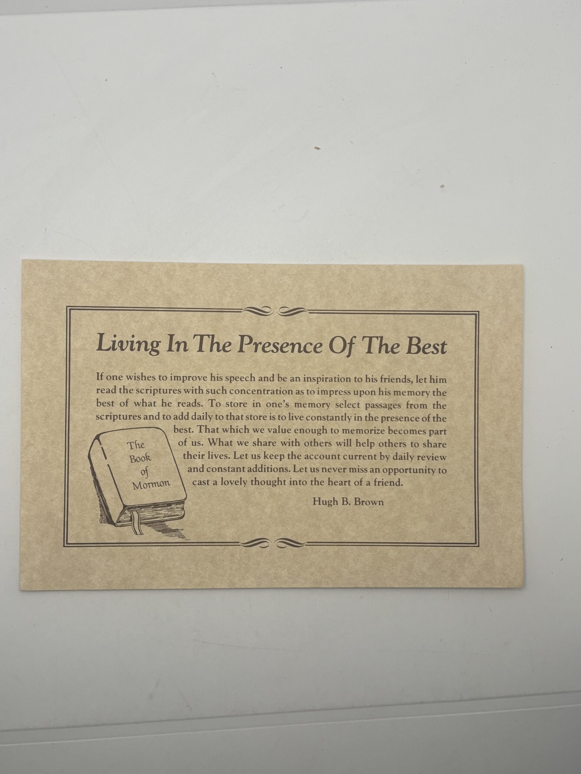 Living in the Presence of the Best quote card by Hugh B. Brown
