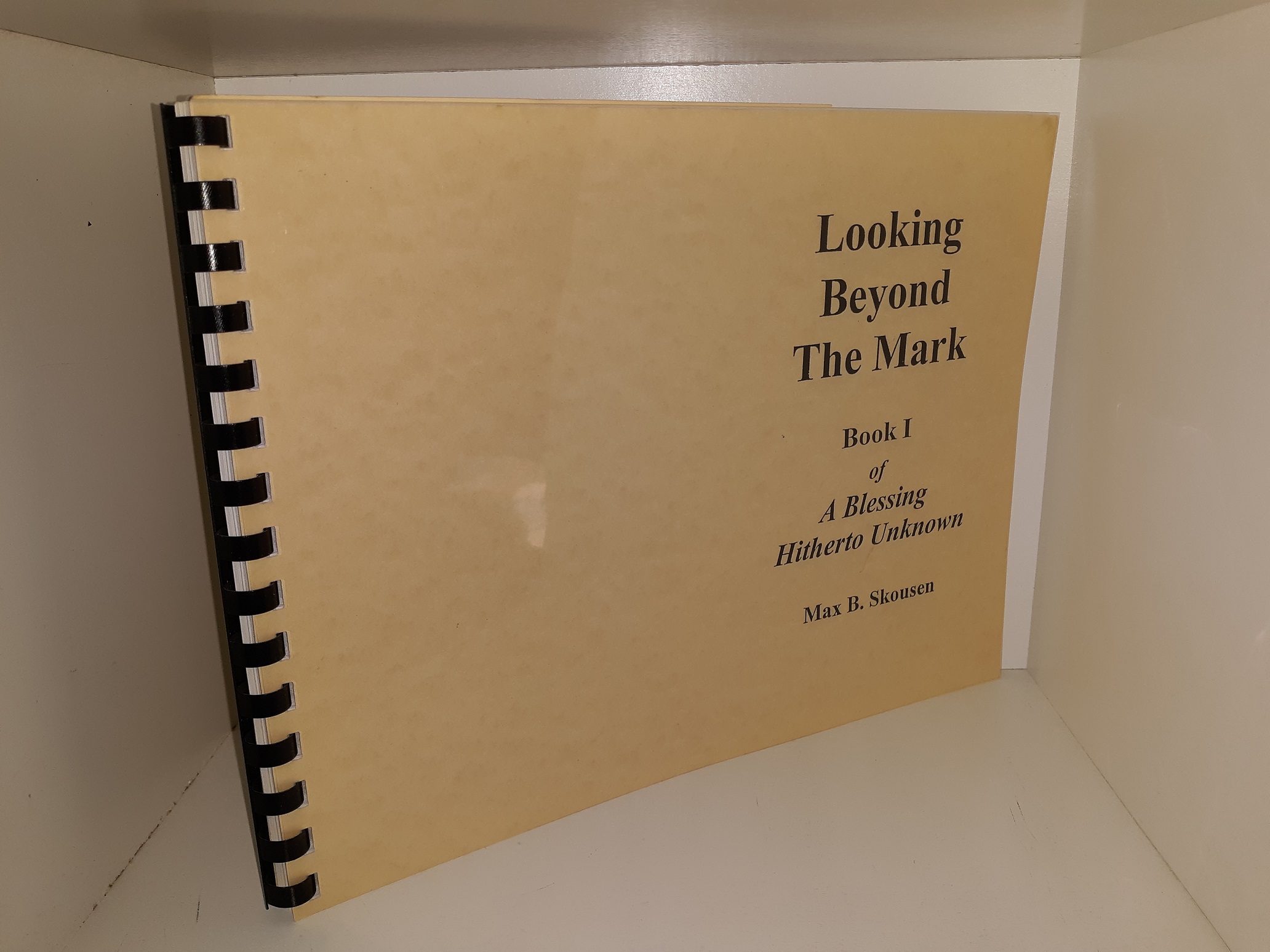 Good condition, large, thin, oblong, tan, softcover, with a black comb binding. The cover has scuff marks. The title page has writing in pencil. Text throughout is clean, clear, and legible.