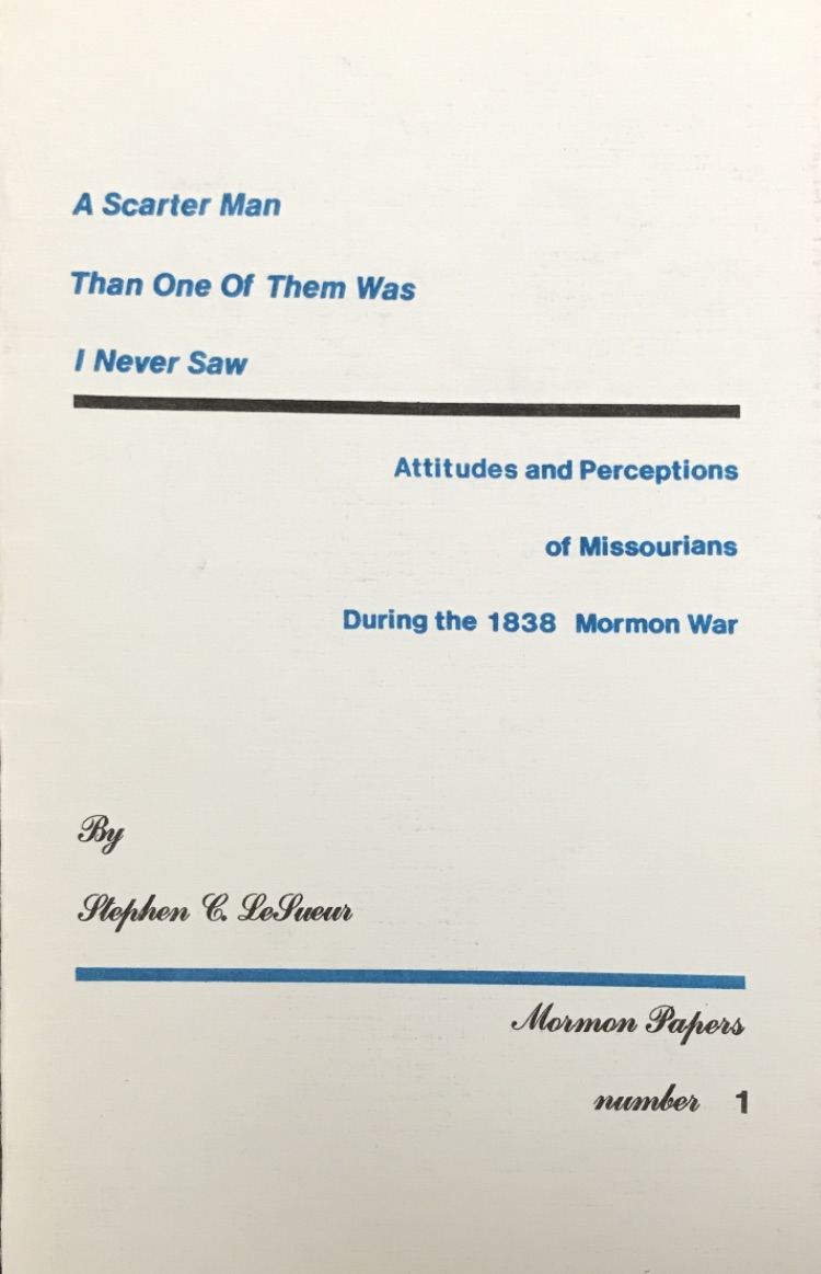 May 1986 ~ Stephen C. LeSueur ~ A Scarter Man Than One of Them Was I Never Saw ~ Attitudes and Perceptions of Missourians During the 1838 Mormon War