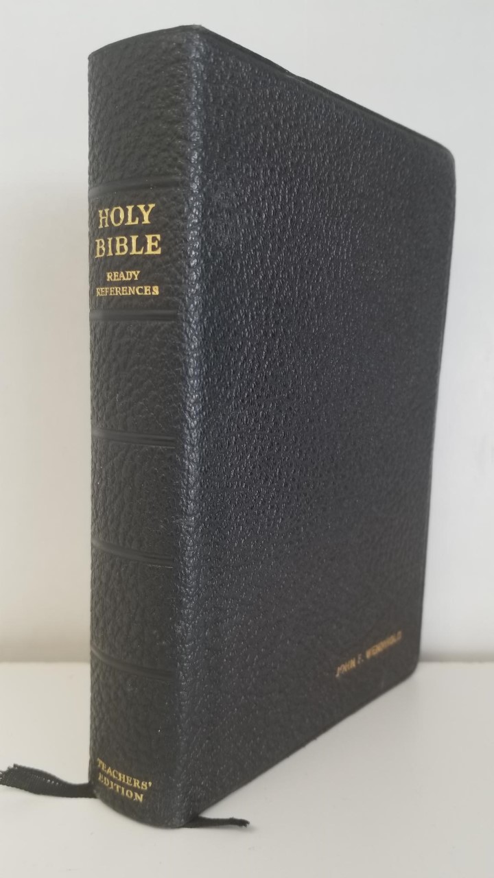 / 1950 — Holy Bible w/Ready References — Teacher’s Edition — Black Leather — Indexed Page Edges — Code on Page 339: 30 D 50