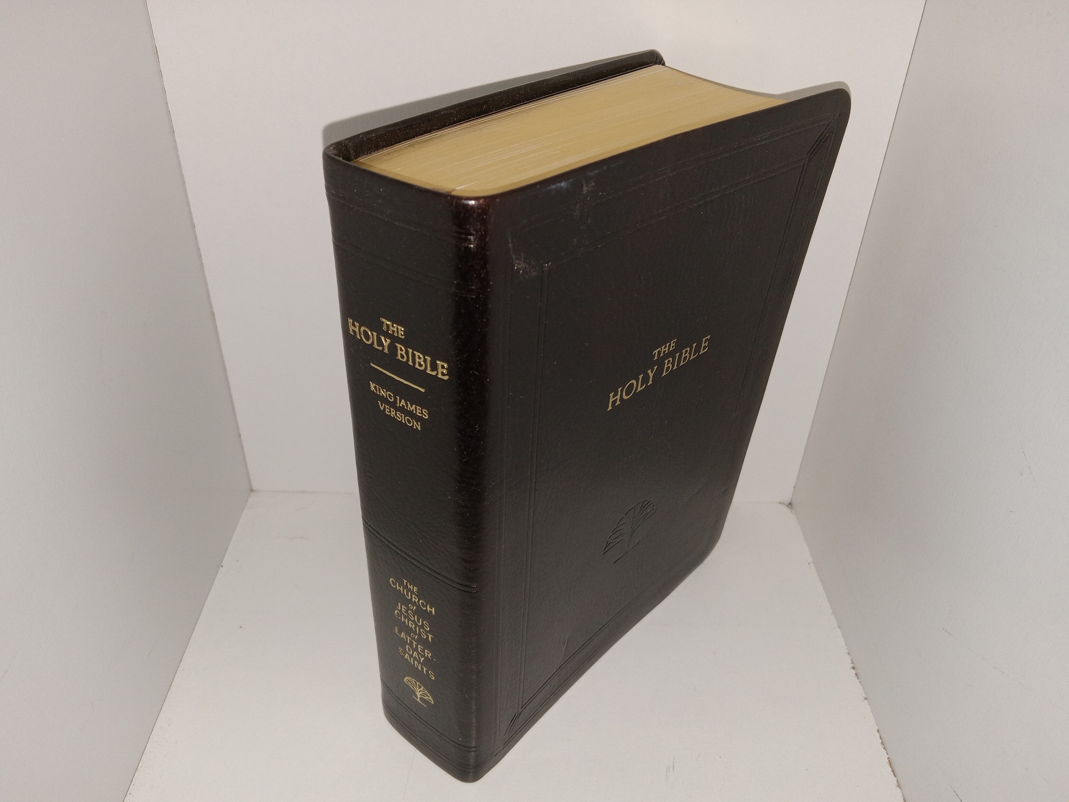 Very good condition, black, leather-bound book. The cover has some tiny bits of residue. Some pages have minor wrinkling. The second flyleaf has writing in pencil. Text and illustrations throughout are clean, clear, and legible.