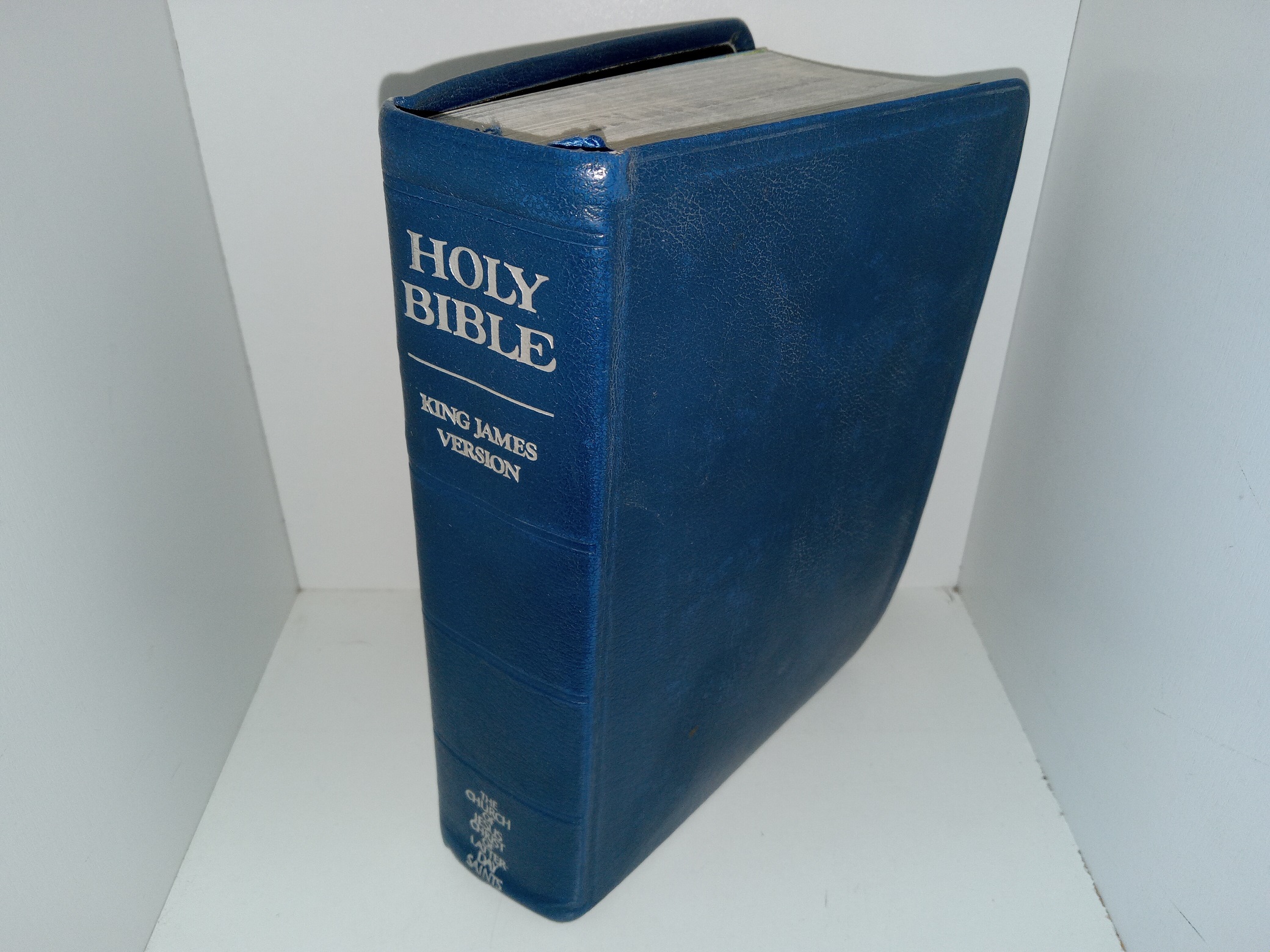 Fair condition, blue, leather-bound book. The cover has some residue and scuff marks. The pages have an ink stamp on the edges, as well as scuffing of the gilding. Some pages have creases, wrinkling, small stains, small tears on the edges, or marks, writing or highlighting in marker, pen, or pencil. The flyleaves have patches of adhesive residue from where tape was removed, or ink stamps.