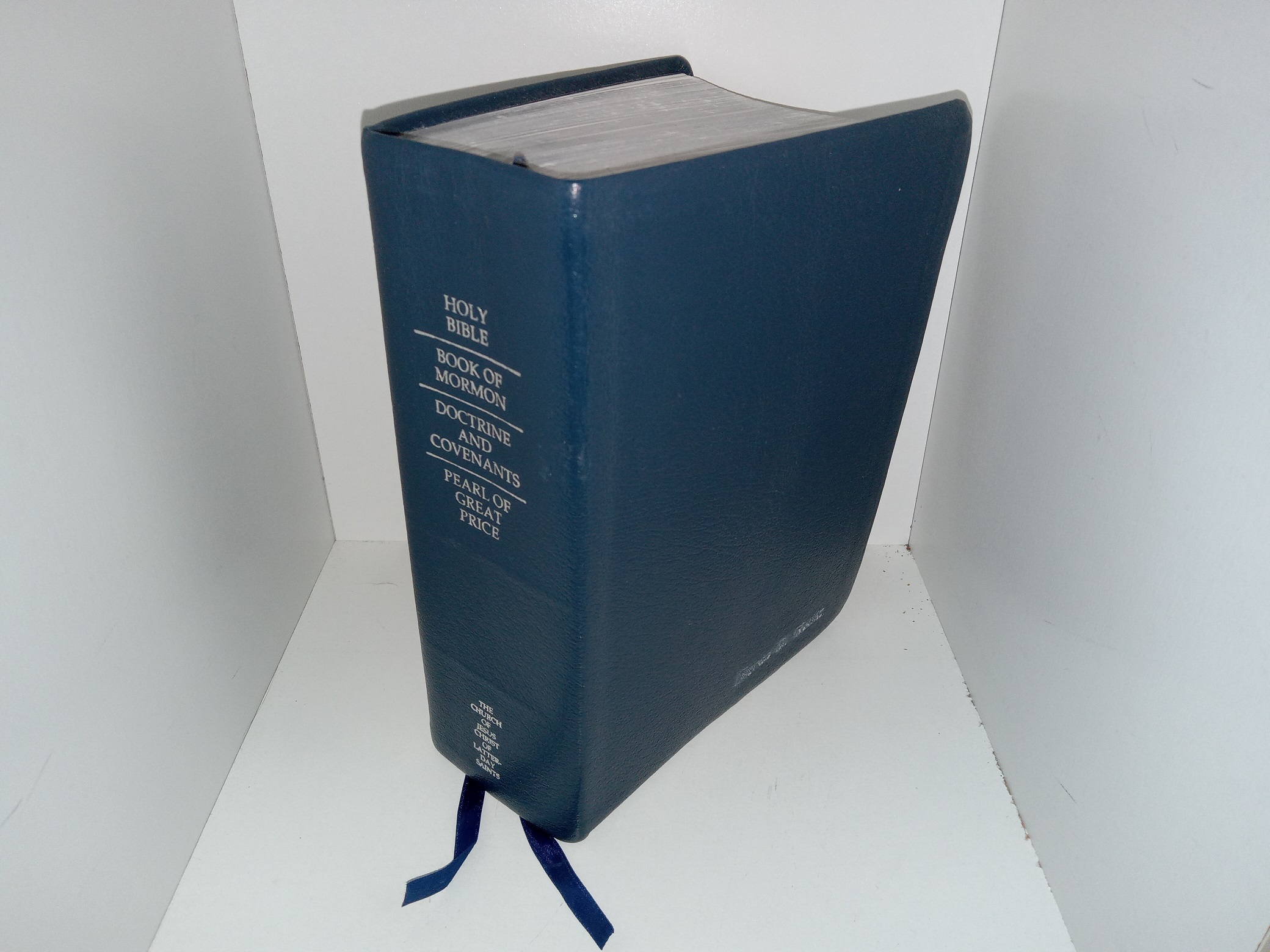 Fair condition, blue, vinyl book. The cover has the name of a previous owner engraved upon it, which has been mostly scraped off. Some pages have scuffing on the edges, or have highlighting or marks in the text written in pencil. The second flyleaf has writing in pencil.